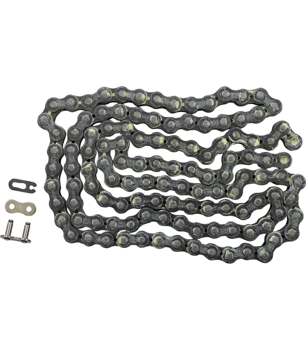 Chaîne 520 MXAssemblage effectué avec de l’acier japonaisAxes de maillon ayant été soumis à un traitement de surface et renforcésRouleaux grenaillés pour davantage de robustesse et pour une résistance au stress accruePlaques, bagues et rouleaux traités thermiquementConception minimisant le poids
