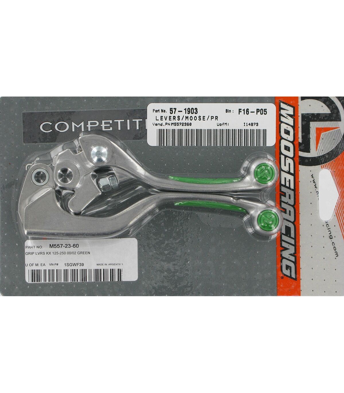 Levier CompetitionJeux de leviers en aluminium coulé avec insert antidérapant en silicone et bagues en bronze antifrictionConstruction en aluminium coulé poli de haute qualitéLes leviers sont plus courts d'environ 25,4 mm (1") par rapport aux leviers d'origineCompatibles avec les cocottes d'origine et Moose RacingVendus par paire (1 levier de frein et 1 levier d'embrayage)