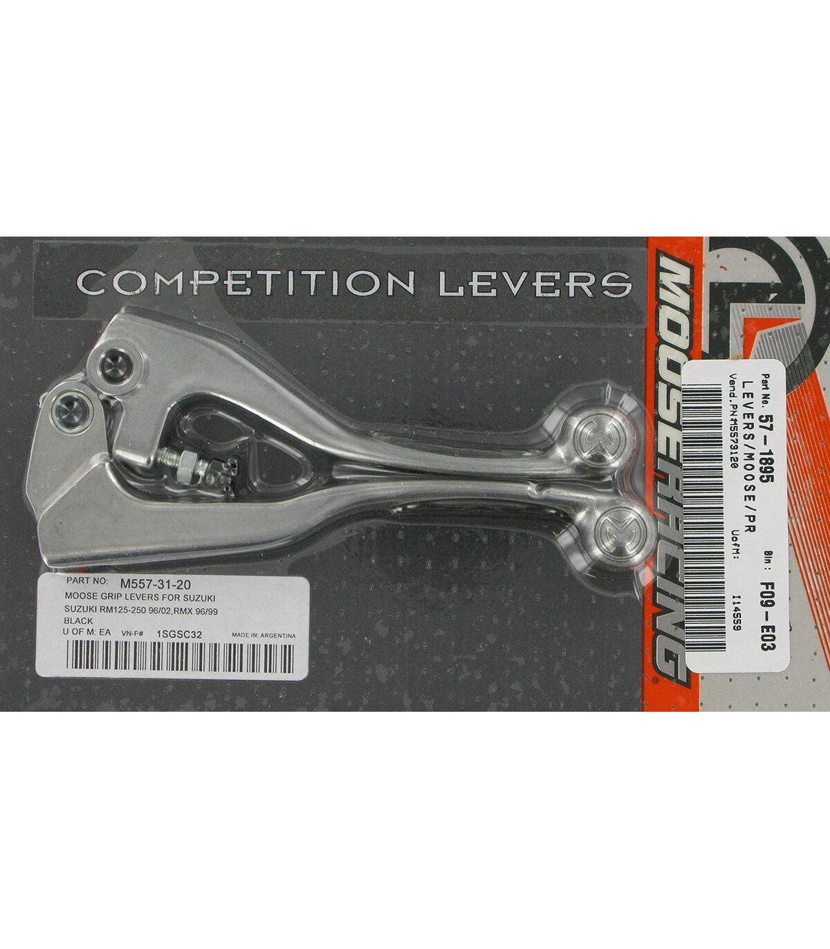 Levier CompetitionJeux de leviers en aluminium coulé avec insert antidérapant en silicone et bagues en bronze antifrictionConstruction en aluminium coulé poli de haute qualitéLes leviers sont plus courts d'environ 25,4 mm (1") par rapport aux leviers d'origineCompatibles avec les cocottes d'origine et Moose RacingVendus par paire (1 levier de frein et 1 levier d'embrayage)