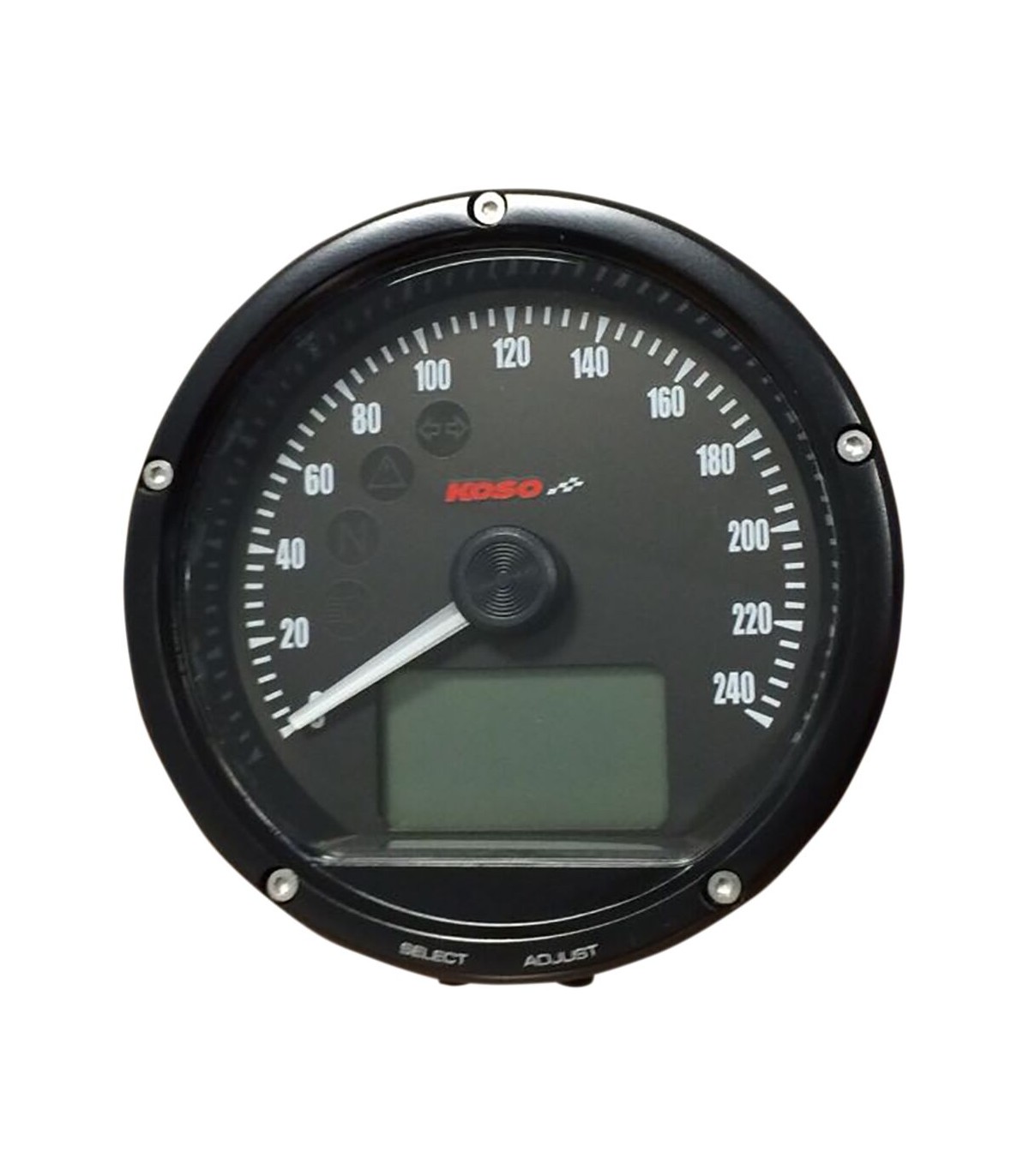 Compteur de vitesses D75Écran facile à lirePlage de 0-140 km/h ou 0-360 km/h, selonle modèle ; compatible avec mphPlage de température effective : -10 °C - +60 °CCinq configurations de rétroéclairage possiblesDimensions : 85,5 mm (3,36") au niveau du cadran de l’instrumentation,79,5 mm (3,12") pour le corps de l’instrumentation