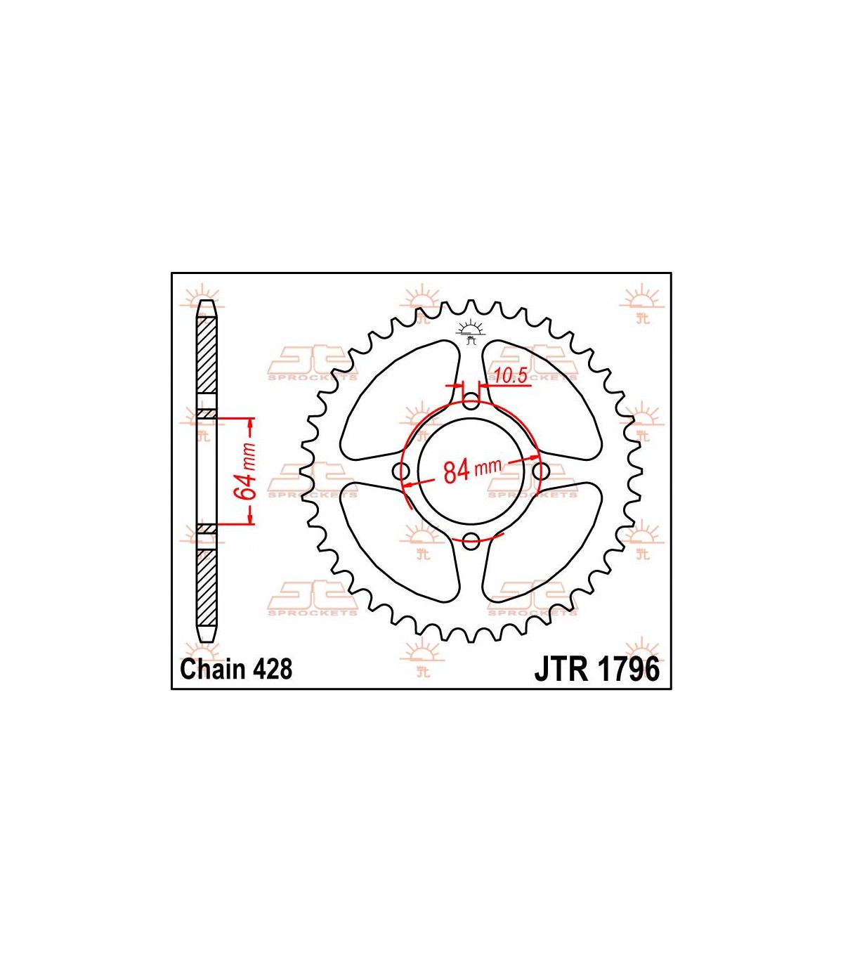 JTR1796.51 REAR REPLACEMENT SPROCKET 51 TEETH 428 PITCH NATURAL STEEL