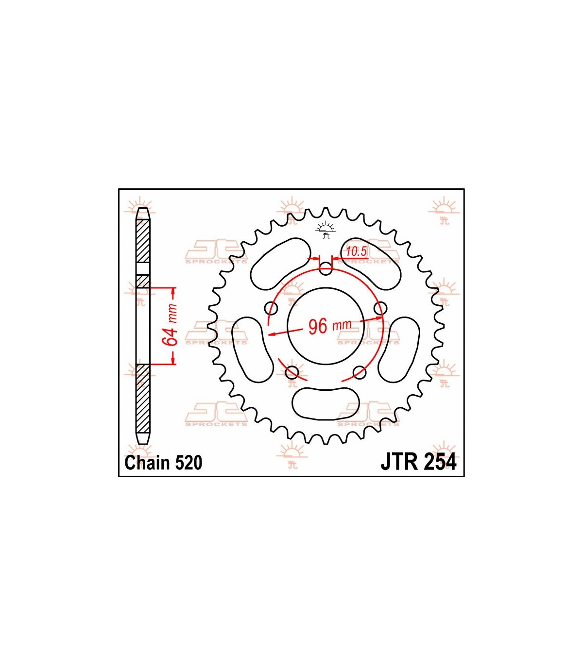JTR254.37 REAR REPLACEMENT SPROCKET 37 TEETH 520 PITCH NATURAL STEEL