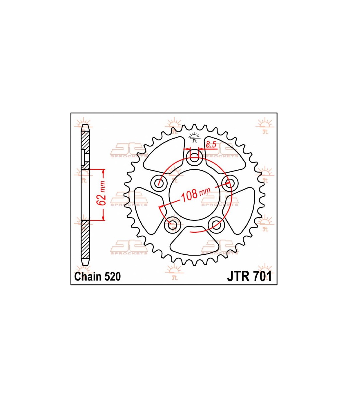 JTR701.41 REAR REPLACEMENT SPROCKET 41 TEETH 520 PITCH NATURAL STEEL