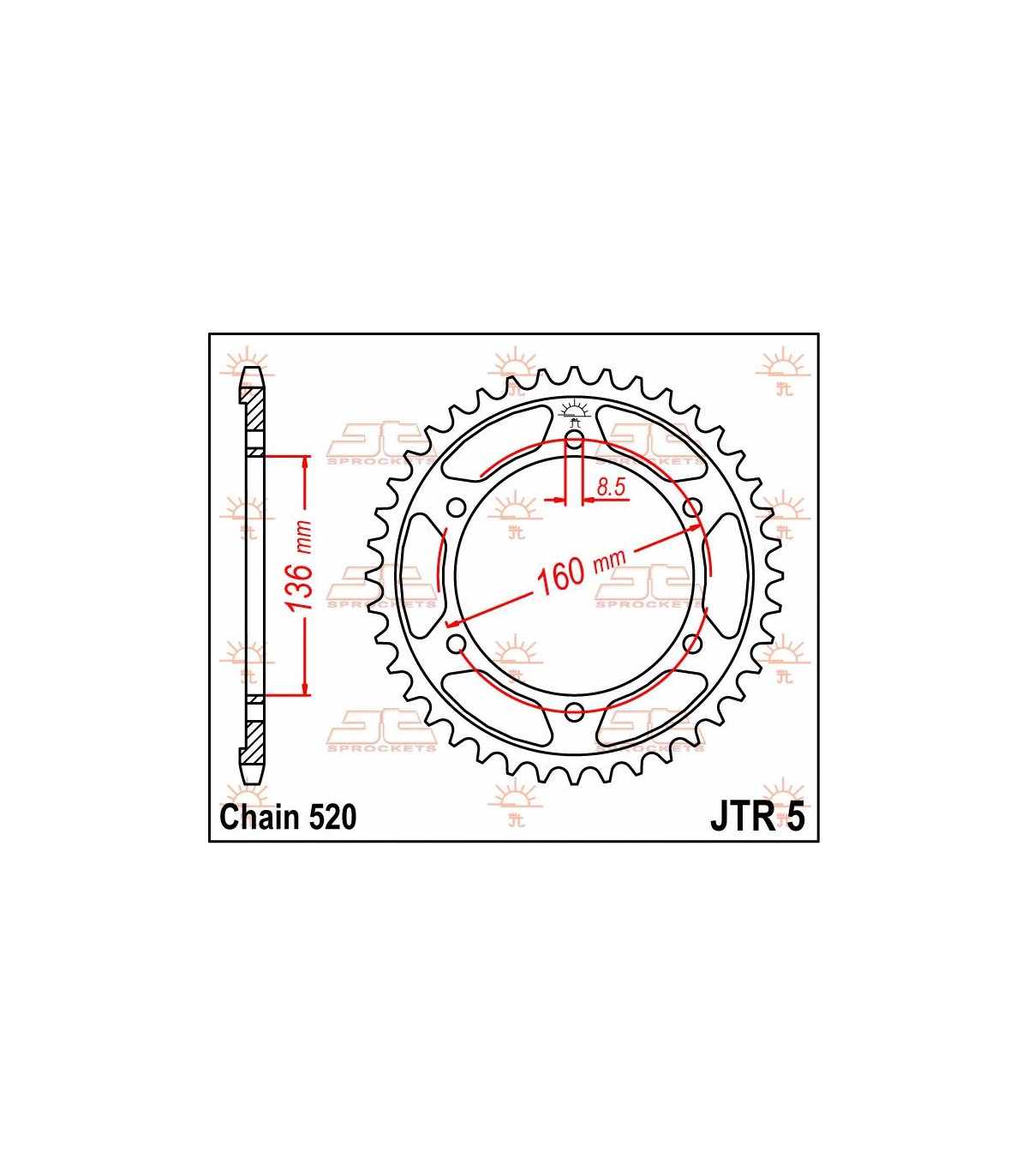 JTR279.33 REAR REPLACEMENT SPROCKET 33 TEETH 520 PITCH NATURAL STEEL