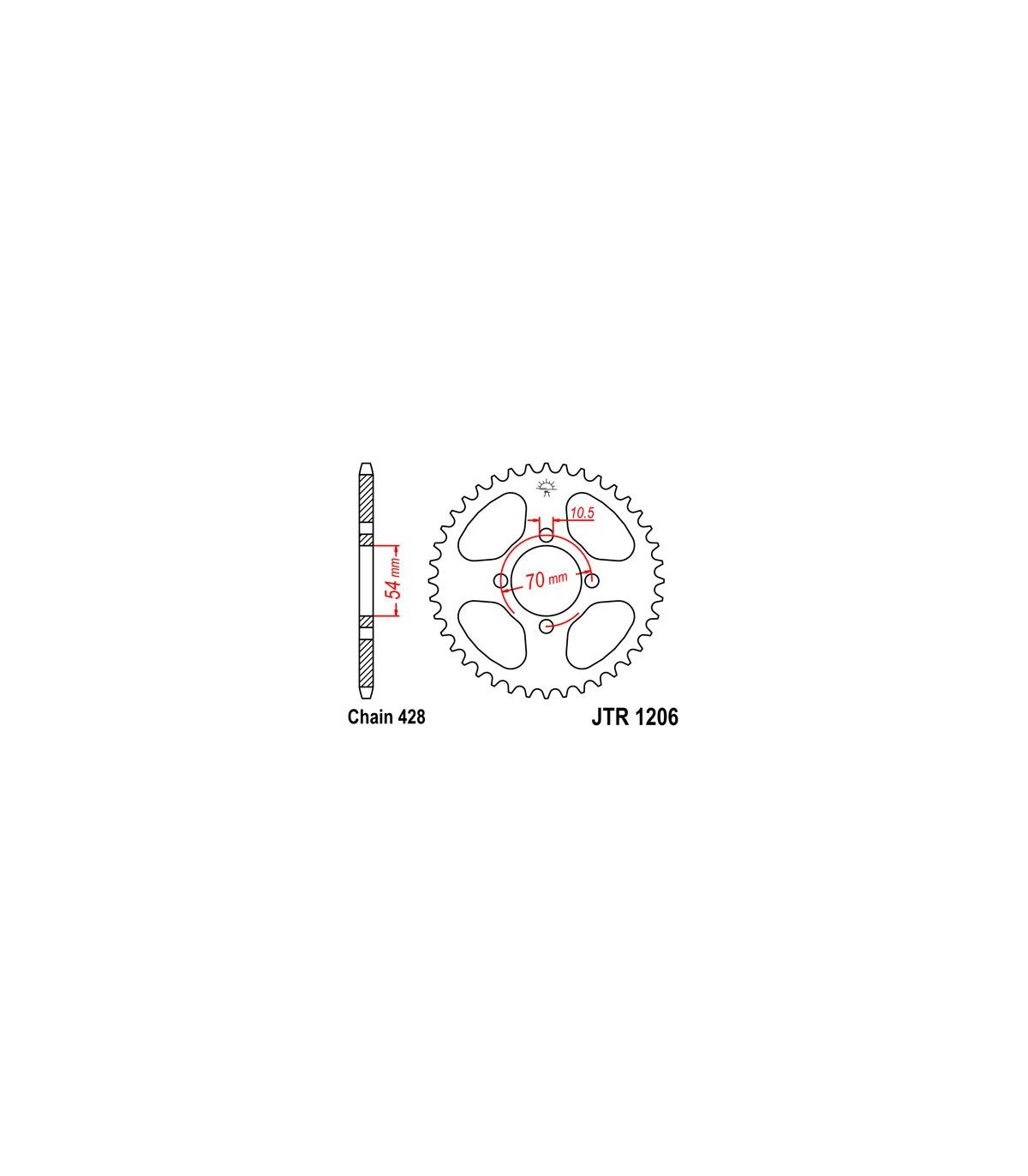 JTR1206.44 REAR REPLACEMENT SPROCKET 44 TEETH 428 PITCH NATURAL C49 HIGH CARBON STEEL