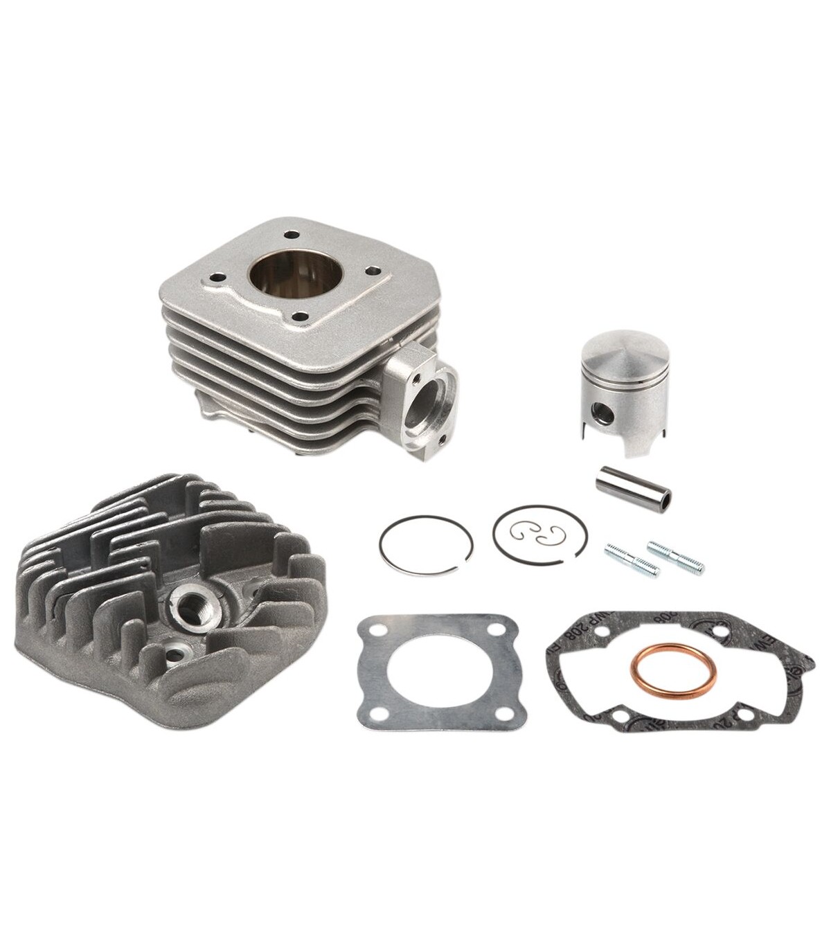 Kit cylindreKit de remplacement de cylindre intégralLes cylindres Airsal sont fabriqués en aluminium avec revêtement Scanimet (carbure de nickel-silicium). Ce revêtement améliore la résistance à l'usure ainsi que les propriétés mécaniques du cylindreLa dureté (+600 wickers), la flexibilité, le faible échauffement et le faible coefficient de friction sont les principales différences par rapport aux cylindres en acier moulé.Cylinder kit contains: cylinder, head, complete piston and gasket kit