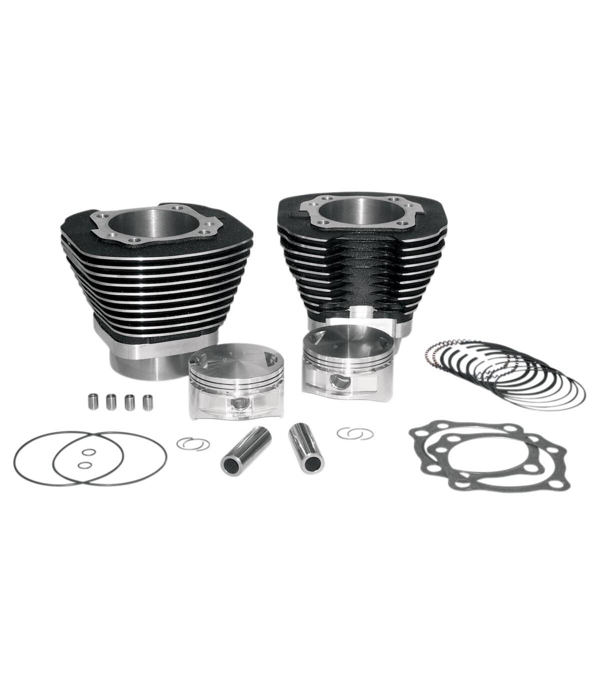 Kit de cylindre big boreLe kit Big Bore obtient des résultats excellents avec les culasses d’origineInstallation facile : les carters existants n’ont pas besoin d’être alésés ni divisés ; il suffit d’échanger les cylindres (sauf instruction contraire).Les cylindres sont conçus à l’aide de coulages d’aluminium de premier ordre, avec un revêtement interne coulé en acierKit comprenant cylindres, pistons, segments et joints (tête, embase, échappement)Fabrication aux États-Unis Il appartient à la personne qui effectue le montage des pièces de vérifier toutes les spécifications de jeu et de montage.Pas pour les moteurs Twin Cooled