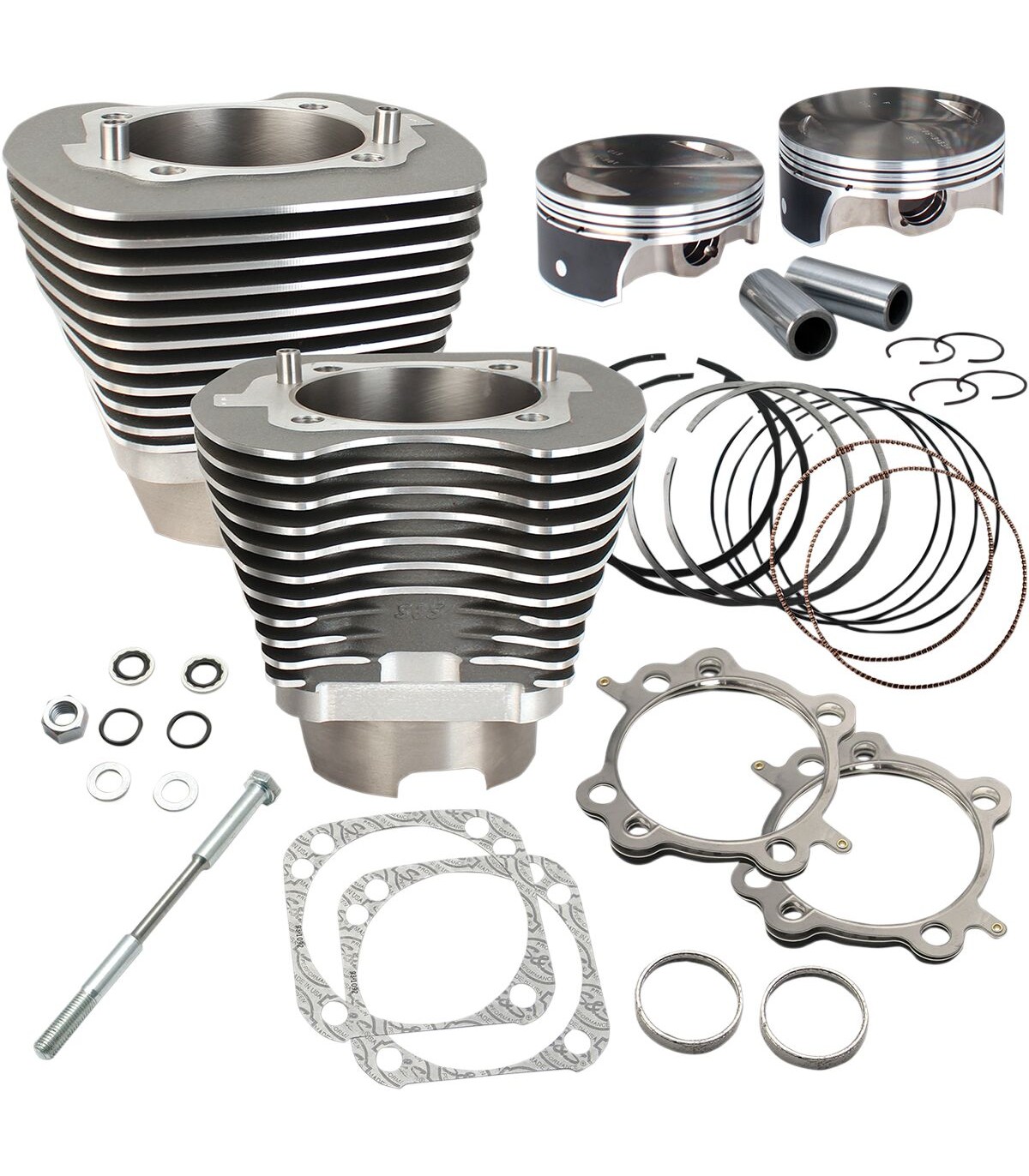 Kit de cylindre big boreLe kit Big Bore obtient des résultats excellents avec les culasses d’origineInstallation facile : les carters existants n’ont pas besoin d’être alésés ni divisés ; il suffit d’échanger les cylindres (sauf instruction contraire).Les cylindres sont conçus à l’aide de coulages d’aluminium de premier ordre, avec un revêtement interne coulé en acierKit comprenant cylindres, pistons, segments et joints (tête, embase, échappement)Fabrication aux États-Unis Il appartient à la personne qui effectue le montage des pièces de vérifier toutes les spécifications de jeu et de montage.Convient pour les moteurs Twin Cooled.