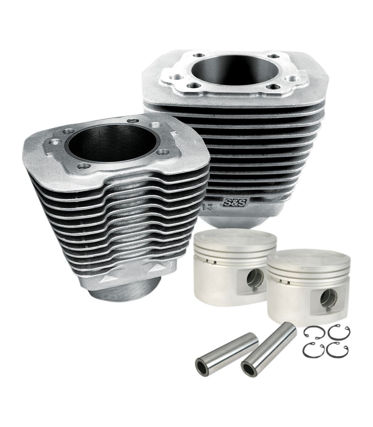 Kit de cylindres et pistonsLes kits de cylindres et pistons contiennent des cylindres S&S à alésage de 3-1/2" (80") et des pistons forgés, des segments, des axes de piston et des joints d’embase et de culasse.Les pistons inclus sont des pistons forgés à tête plate conçus pour être utilisés avec des cylindres d’origine ou des cylindres de rechange S&S (taux de compression de 8,8:1).