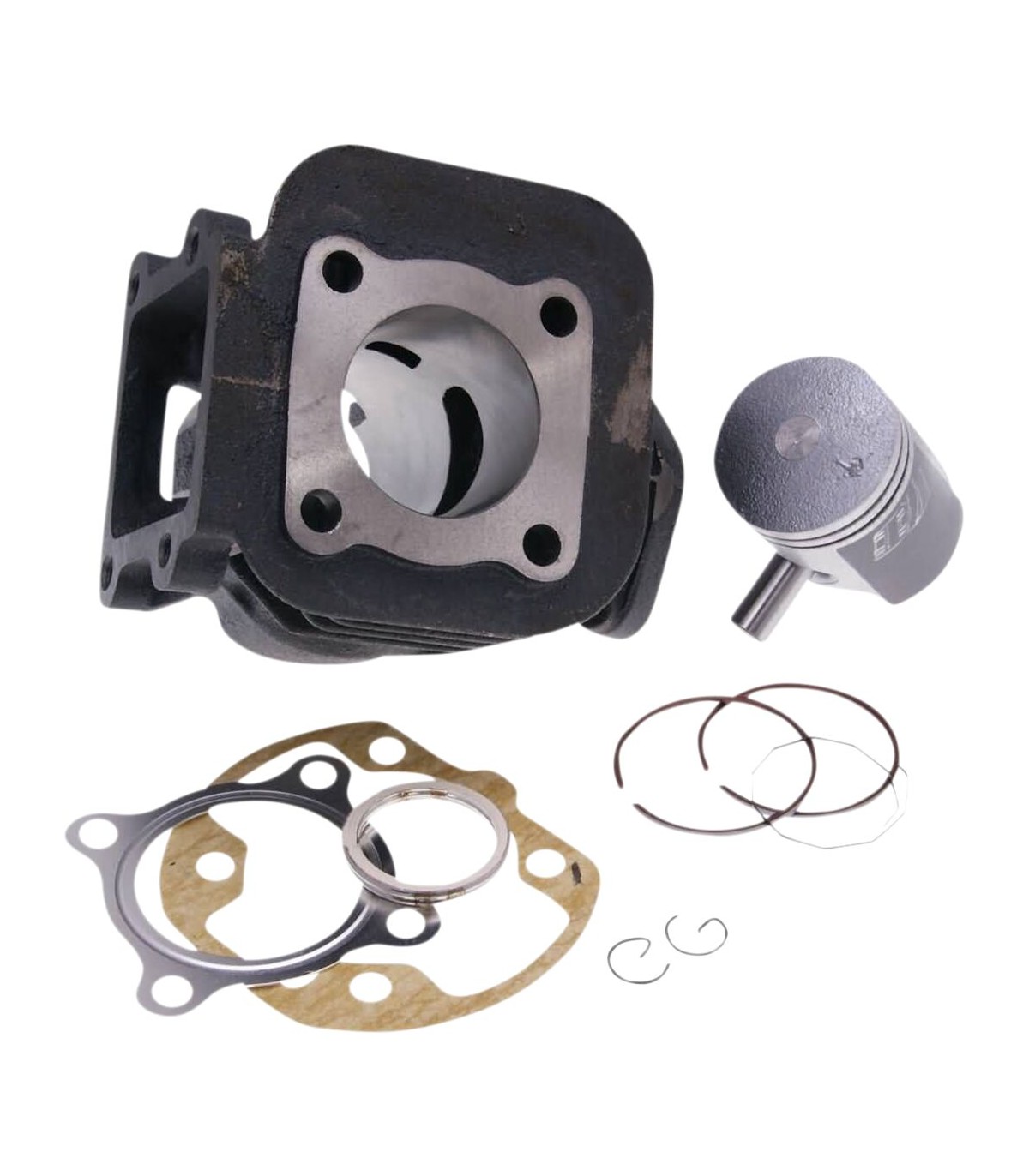 Cylinder Kit 50cc for Minarelli vertical ACThe Naraku 50cc cast iron cylinder is a an affordable and robust alternative for those who are looking for a replacement top end due to cylinder or piston damageThe power output is slightly higher than that of the original cylinderAll in all, a very good quality kit for the priceSupplied with barrel, piston, rings, pin, clips and gasketsOriginal cylinder head may be retainedPlease be careful when assembling the piston rings, the "T" or "J" mark on the piston ring end must be facing up