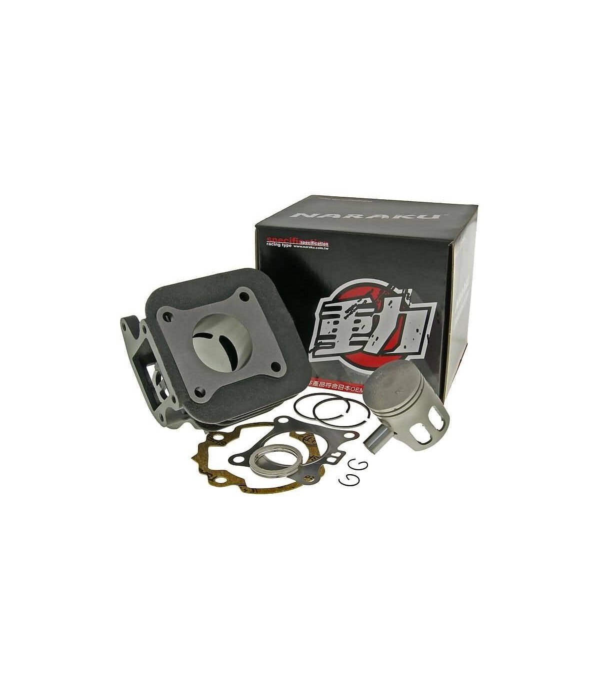 Cylinder Kit 60cc for Kymco, SYM ACHigh-torque NARAKU cylinder kit that is very practical for everyday useThis cylinder kit is not designed to be revvy, but rather it shows its strengths in the lower rangeJust above the idling speed comes solid, constant and very strong accelerationAll that, without straining the engine at unnecessarily high engine speedsThe power output from standing make for very good starting and traffic light getaways, and "hill climbing" is made easier, even with pillion! The sound is fairly standardThis cylinder highly suitable for everyday use, because the performance improvement can be achieved using the original exhaust systemCompatible for original and sports exhaust systems Jetting must be increased [+7% to 10%]