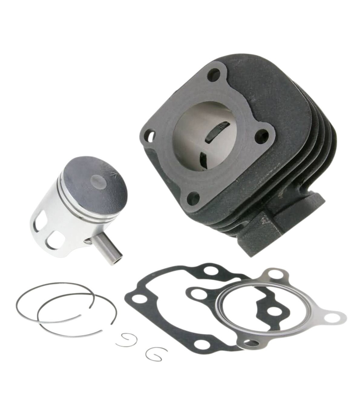 Kit de cylindre 50 cm³/axe de piston de 10 mm pour moteurs Minarelli horizontaux refroidis par airKit de cylindre très économique pour moteurs Minarelli horizontaux refroidis par airLa taille et les performances du cylindre sont identiques à celles de la pièce d’origine, ce qui le désigne tout naturellement comme le cylindre de rechange homologué pour la route à adopter.Il représente la solution parfaite si vous recherchez un cylindre de rechange.Le kit est livré avec tous les composants individuels, mais sans culasse.Celle-ci doit être achetée séparément.