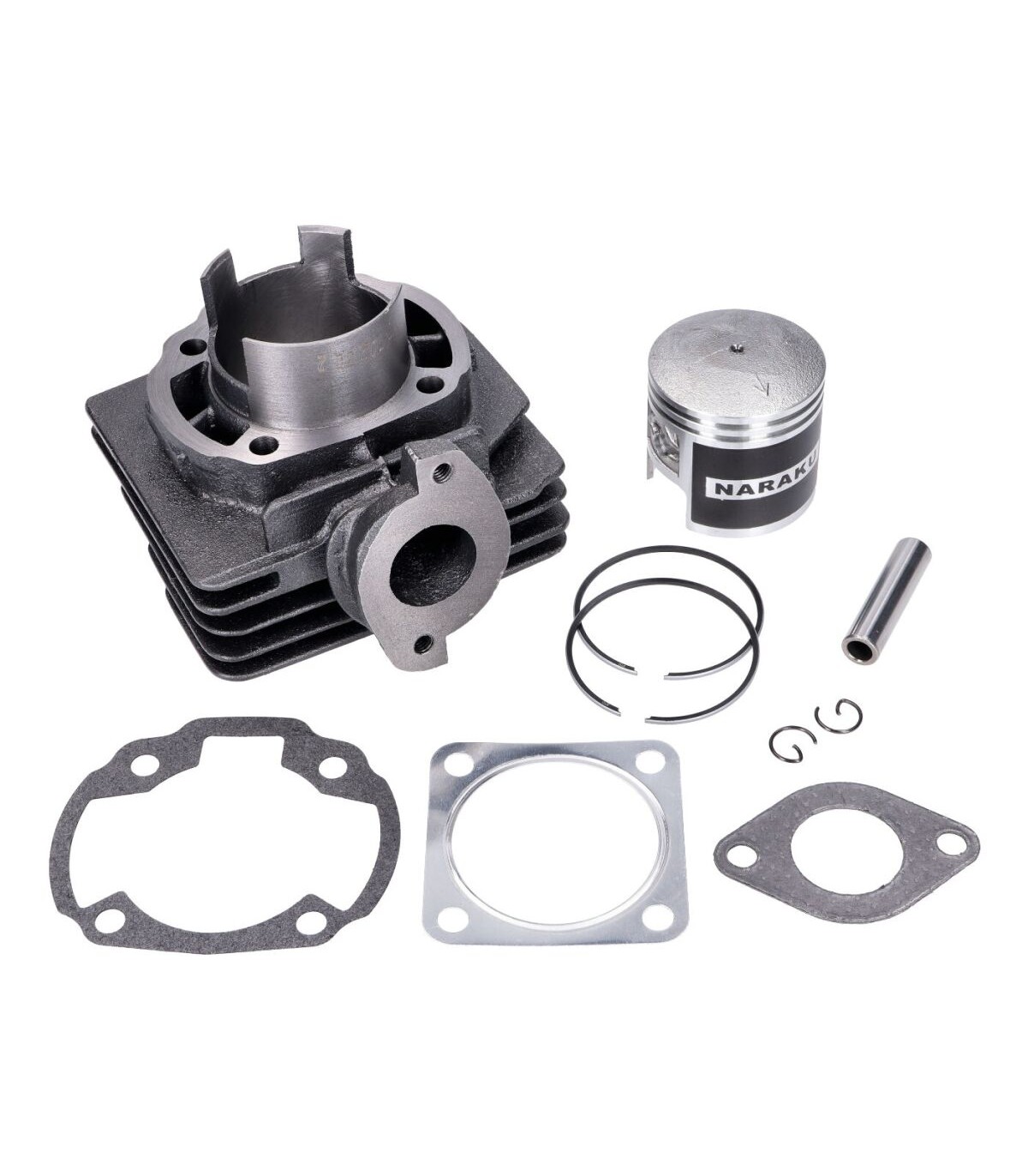 Cylinder Kit V.2 70cc for Morini AC70cc cast iron cylinder kit from Naraku for Morini enginesThe Naraku piston is supplied with a molybdenum coating which protects both cylinder and piston during the running in process, this coating usually dissolves after timeThis cylinder is suitable for use with original and performance exhaust systemsIf using the original carburettor you will need to upjet approx 7-10% but we do recommend using a 17.5 - 19mm carburettor for optimum performanceSupplied as shown on the product photoOriginal cylinder head can be used, but 70cc cylinder head is recommended (to purchase separately)This kit is ideal for everyday use with significant power gains on acceleration70cc cast iron cylinder kit from Naraku for Morini engines.