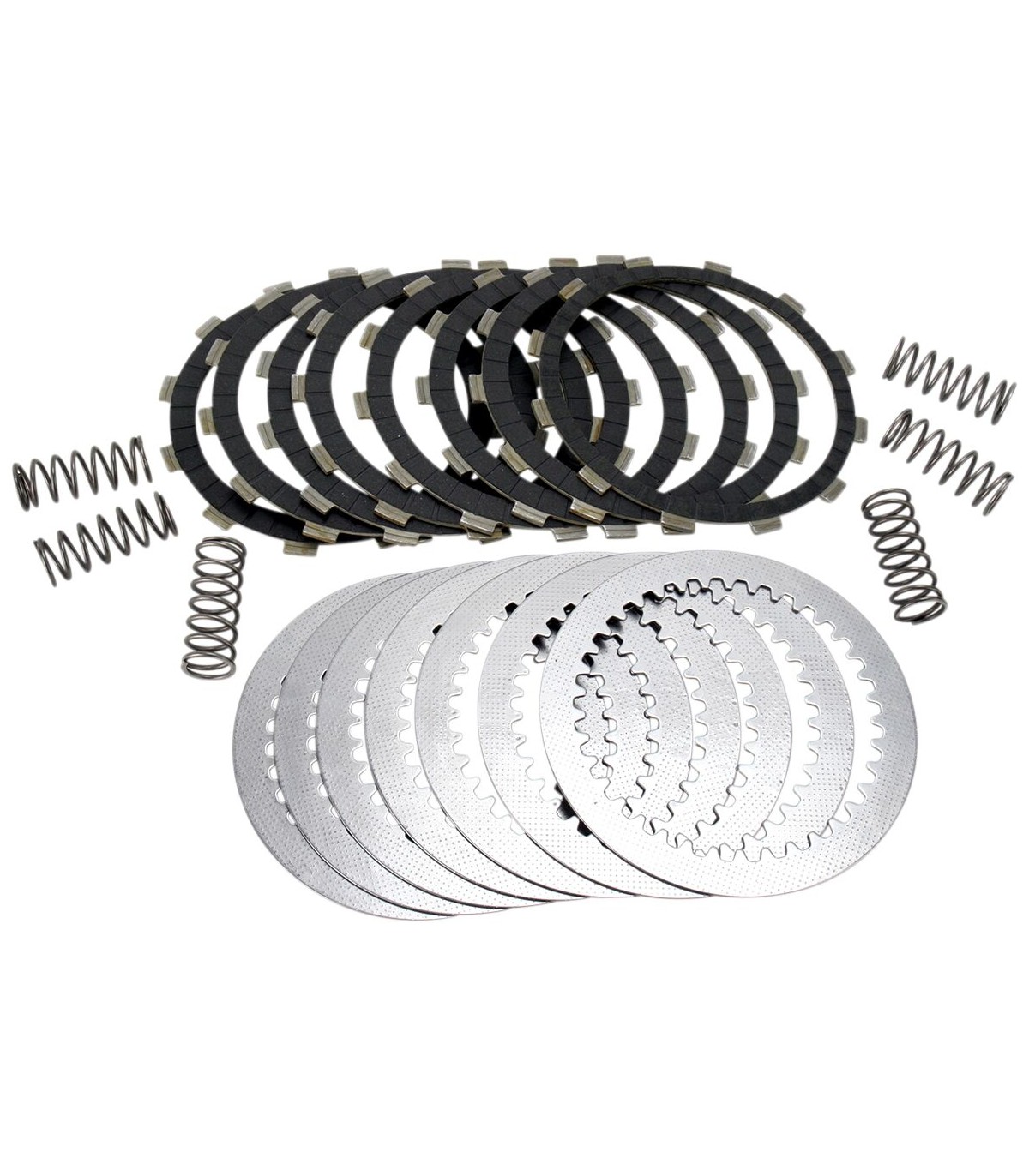 Kit d’embrayage série DRCFKit d'embrayage renforcé conçu pour une utilisation intensive et dans un environnement de courseMuni de disques garnis d’embrayage revêtus de fibre de carbone, d’un jeu complet de disques lisses eIdéal pour les applications de moteur à 4 temps et couple élevé ; amélioration parfaite des performances 2 temps