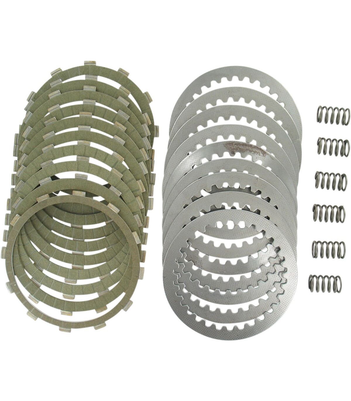 Kits d’embrayage série SRK Race/SportComprend des disques garnis revêtus en fibre aramide, des disques lisses et des ressorts Ressorts type diaphragme utilisés dans les kits pour motos avec diaphragmes d'embrayage d'origine Tous les kits sont conçus pour supporter les rigueurs d'une utilisation urbaine et de course intensive