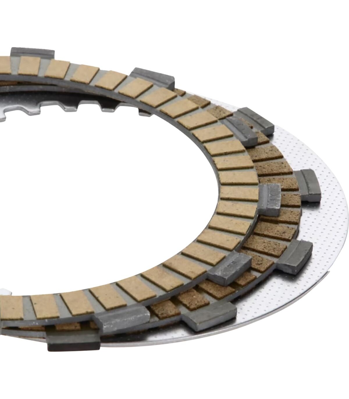 Clutch Plate SetSets contain all friction plates and steels required per application for easy replacementManufactured by the leading OEM factoriesSteel plates offer longevity, durability and the clutch feel of OEMSpecial designed springs are 10% stiffer than OEM to reduce clutch slippage under extreme conditions, resulting in maximum control and instant driveCan be used in combination with all other ProX or OEM clutch components
