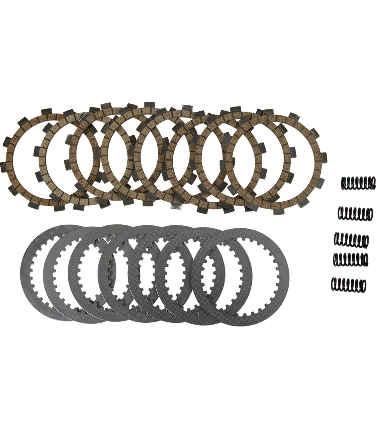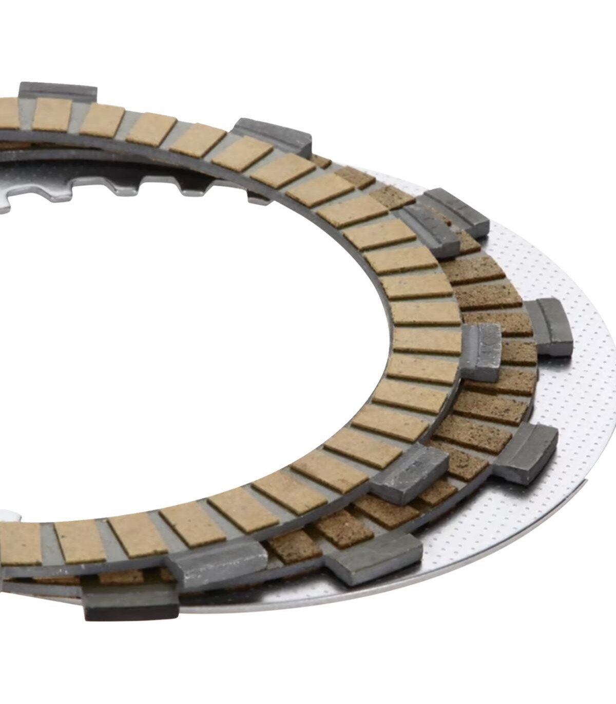 Clutch Plate SetSets contain all friction plates and steels required per application for easy replacementManufactured by the leading OEM factoriesSteel plates offer longevity, durability and the clutch feel of OEMSpecial designed springs are 10% stiffer than OEM to reduce clutch slippage under extreme conditions, resulting in maximum control and instant driveCan be used in combination with all other ProX or OEM clutch components