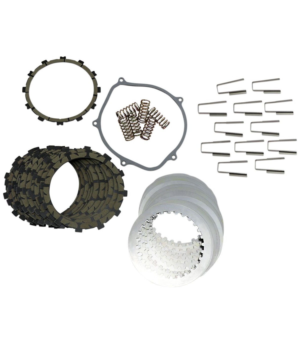 Kit d’embrayage TorqDrive®Le pack d’embrayage TorqDrive® met désormais à disposition un embrayage manuel hautes performances le plus simplement du monde.C’est aussi facile que de changer vos disques d'embrayage avec les composants d'origineÉprouvée pendant la course aux niveaux les plus élevés, la technologie de disque garni fin TorqDrive® permet d’installer plus de disques dans la surface de contact avec le sol de votre embrayage d’origine, réduisant les dérapages et libérant toute la puisLa technologie TorqDrive prolonge également la durée de vie de l'embrayage et limite ses pertes de performanceLes disques d’embrayage supplémentaires offrent, en moyenne, 25 % de capacité de torque de plus que la version de série, tout en réduisant la réponse du levier de 10 % en moyenne (ces chiffres varient selon le modèle)TorqDrive® procure un entraînement accru dans toute la plage de régimes, libérant ainsi la puissance sans modification onéreuse du moteur.Avec les manchons Rekluse, la cloche d'embrayage de s’use pas et aucune encoche ne se formeMade in the U.S.AIl ne s'agit pas d'un pack d'embrayage de rechange pour RadiusX, RadiusCX ou Core Manual TorqDrive