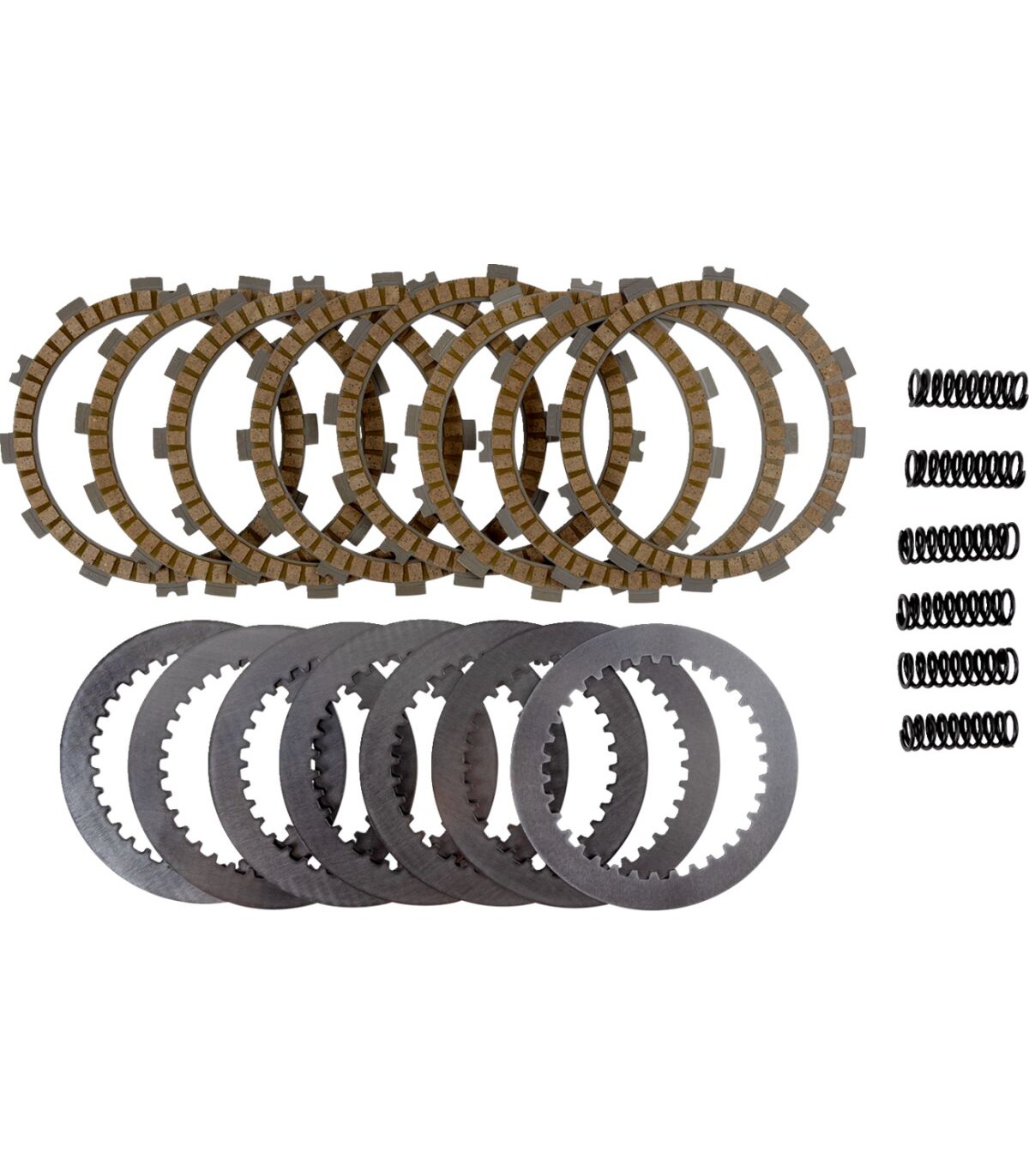 Clutch Plate SetSets contain all friction plates and steels required per application for easy replacementManufactured by the leading OEM factoriesSteel plates offer longevity, durability and the clutch feel of OEMSpecial designed springs are 10% stiffer than OEM to reduce clutch slippage under extreme conditions, resulting in maximum control and instant driveCan be used in combination with all other ProX or OEM clutch components