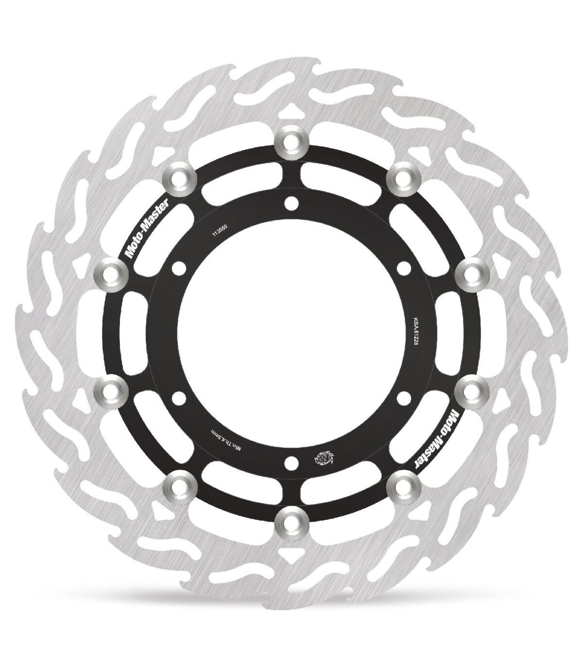 Flame Series Floating RotorThe unique Flame design offers optimal cooling and unsurpassed smooth and predictable braking action which allows you to brake harder.Flame Road Discs are also available in a Racing version for professional racing and track day use.For best performance we recommend using Moto-Master brake pads.Brake Rotor Floating Flame Alu Black