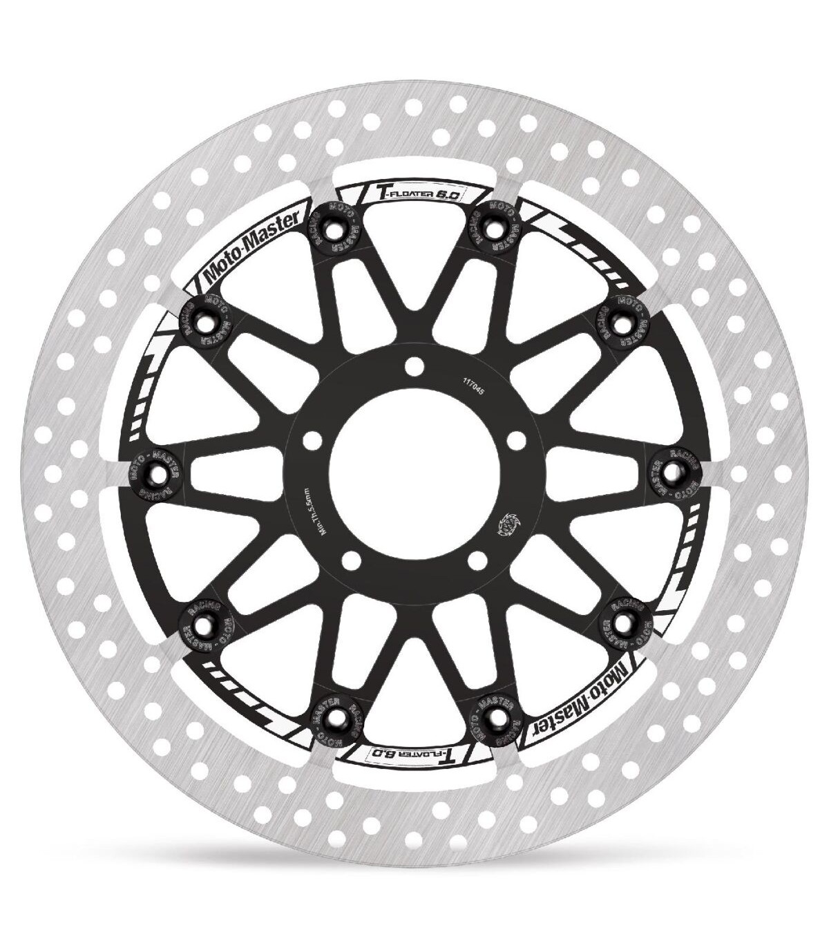 Disque de frein T-Floater série HALOLa conception de l'anneau extérieur HALO assure une dissipation régulière de la chaleur dans des conditions de stress thermique, tout en préservant la propreté de la surface de contact de la plaquette de frein.L'épaisseur de l'anneau extérieur est de 6,0 mm (320 mm) et comporte un trou de refroidissement supplémentaire sur le périmètre extérieur.La partie extérieure découpée au laser et meulée avec précision est fixée à un support en aluminium taillé dans la masse usiné CNC de qualité aéronautique qui est anodisé noir et marqué au laser.Le système T-Floater offre un comportement de flottement contrôlé précis même dans les conditions extrêmes de courseLe design sophistiqué T-Floater permet de résister à de grandes charges mécaniques et de réduire l'usure à un minimumLe système T-Floater est léger grâce à des flotteurs en aluminium anodisé dur spécialement conçus.Brake Rotor Halo T-Floater, Outside Diameter 330mm, Inner Diameter 72mm, Thickness 6,0mm, Pitch 90mm