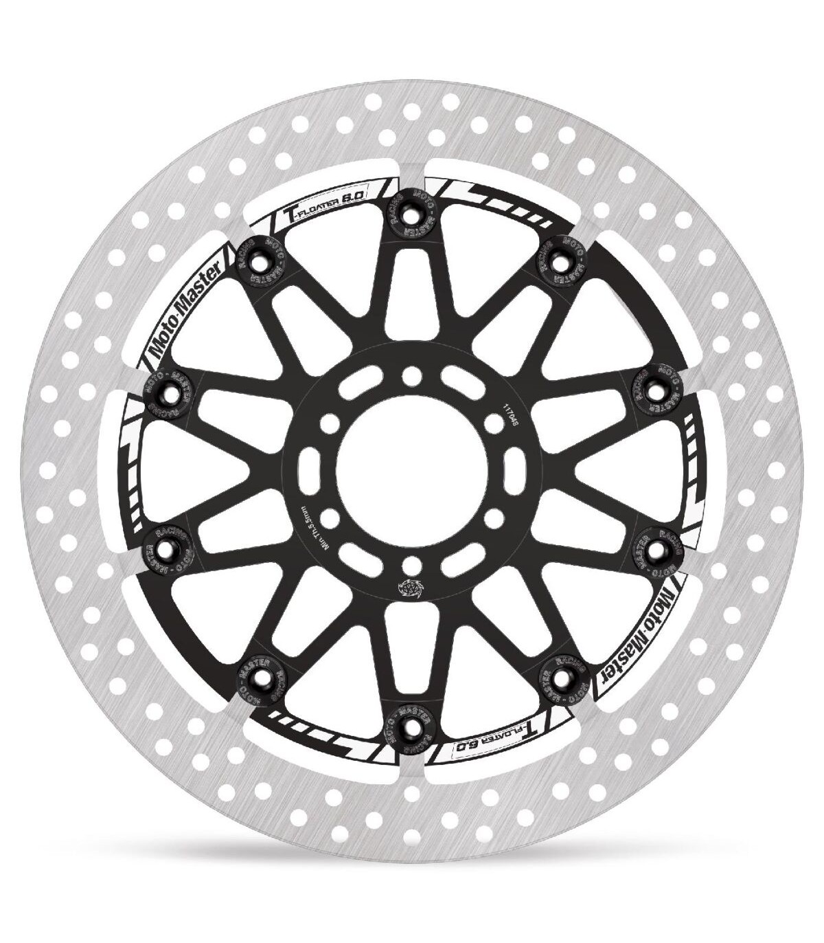 Disque de frein T-Floater série HALOLa conception de l'anneau extérieur HALO assure une dissipation régulière de la chaleur dans des conditions de stress thermique, tout en préservant la propreté de la surface de contact de la plaquette de frein.L'épaisseur de l'anneau extérieur est de 6,0 mm (320 mm) et comporte un trou de refroidissement supplémentaire sur le périmètre extérieur.La partie extérieure découpée au laser et meulée avec précision est fixée à un support en aluminium taillé dans la masse usiné CNC de qualité aéronautique qui est anodisé noir et marqué au laser.Le système T-Floater offre un comportement de flottement contrôlé précis même dans les conditions extrêmes de courseLe design sophistiqué T-Floater permet de résister à de grandes charges mécaniques et de réduire l'usure à un minimumLe système T-Floater est léger grâce à des flotteurs en aluminium anodisé dur spécialement conçus.Brake Rotor Halo T-Floater, Outside Diameter 330mm, Inner Diameter 64mm, Thickness 6,0mm, Pitch 80mm