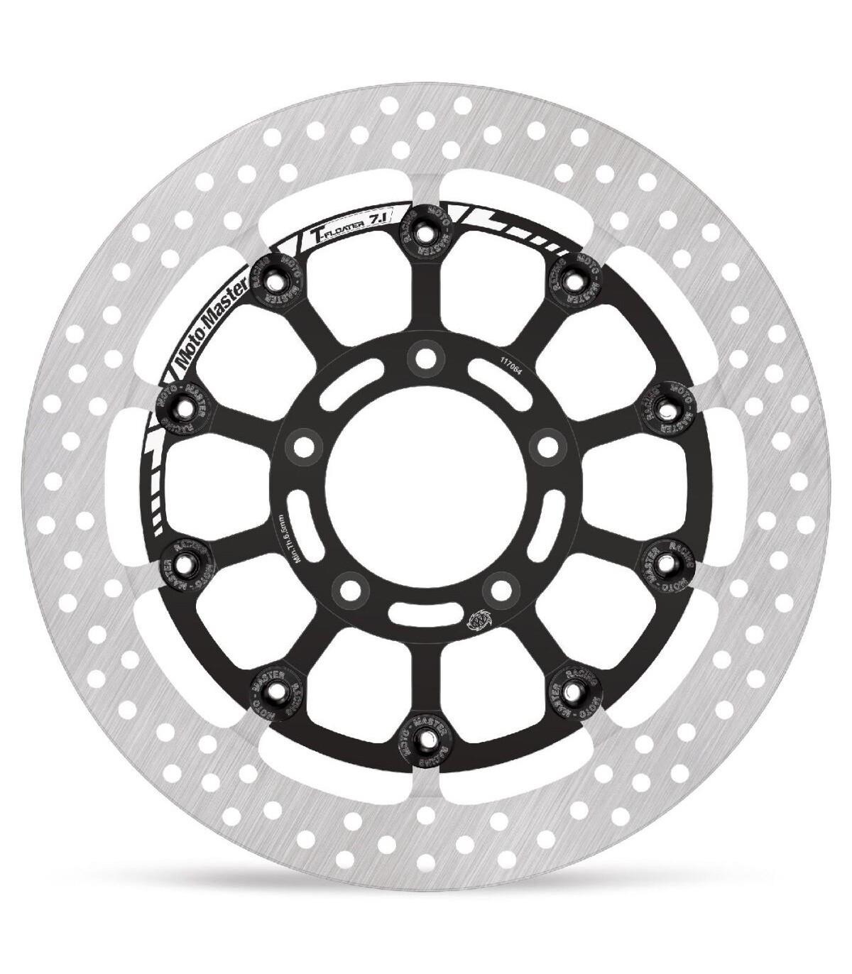 Disque de frein T-Floater série HALOLa conception de l'anneau extérieur HALO assure une dissipation régulière de la chaleur dans des conditions de stress thermique, tout en préservant la propreté de la surface de contact de la plaquette de frein.L'épaisseur de l'anneau extérieur est de 6,0 mm (320 mm) et comporte un trou de refroidissement supplémentaire sur le périmètre extérieur.La partie extérieure découpée au laser et meulée avec précision est fixée à un support en aluminium taillé dans la masse usiné CNC de qualité aéronautique qui est anodisé noir et marqué au laser.Le système T-Floater offre un comportement de flottement contrôlé précis même dans les conditions extrêmes de courseLe design sophistiqué T-Floater permet de résister à de grandes charges mécaniques et de réduire l'usure à un minimumLe système T-Floater est léger grâce à des flotteurs en aluminium anodisé dur spécialement conçus.Brake Rotor Halo T-Floater, Outside Diameter 321mm, Inner Diameter 80mm, Thickness 7,1mm, Pitch 105,5mm