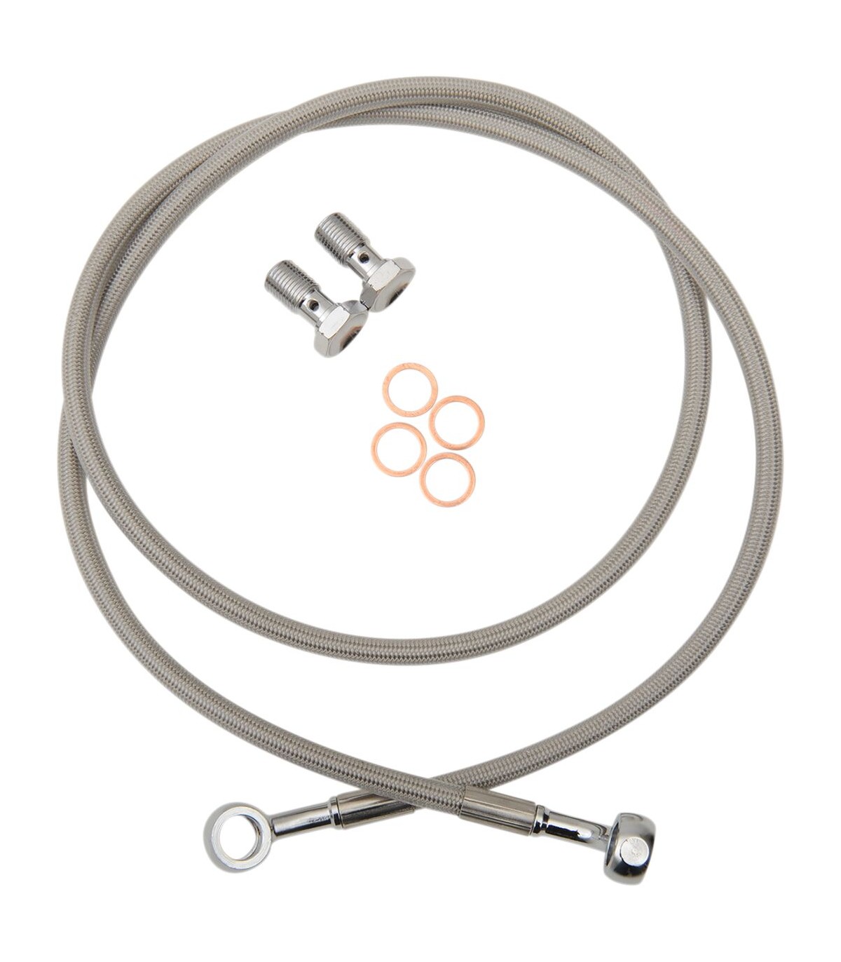 Durite de frein allongéeLe cache transparent en PVC anti-UV protège les surfaces susceptibles d’être en contact avec la durite de frein Fixation triple placage pour une résistance supérieure à la corrosion Résiste à la flexion sous pression pour des sensations plus constantes Installation facile, matériel de montage comprisFabrication aux États-Unis