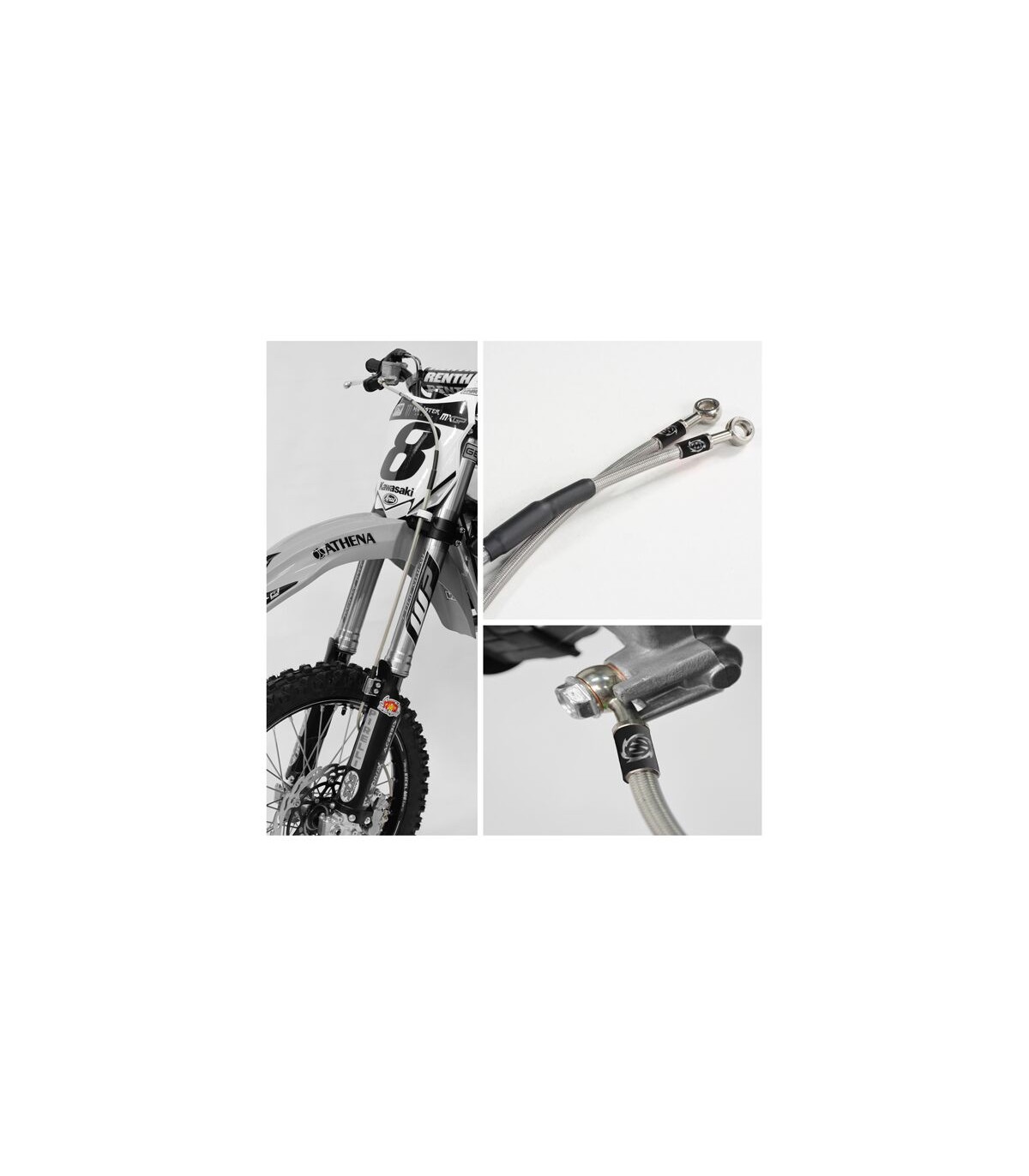 Durite de frein en acier inoxydableConçue spécialement pour une utilisation avec notre maître-cylindre radial, cette durite de frein en acier inoxydable tressé est une amélioration considérable pour tous les systèmes de freinsProtégée par un cache en PVC léger, mais durable qui lui permet de résister aux charges importantes et fournissant également de meilleures sensations et une incroyable réponse en raison de sa flexibilité réduite par rapport à la durite en plastique d'origine standardToutes les durites sont livrées avec le kit de montage nécessaire, y compris les vis Banjo et des rondelles en cuivre ainsi que les instructions d'installationPour motos sans pharesCes durites de frein DOIVENT être utilisées avec le maître-cylindre radial Moto Master réf. N° 0611-0026 et 0611-0027. Les durites de frein d'origine ne conviendront pas.Brake Line Stainless Steel Front KTM, Husqvarna, Gas Gas