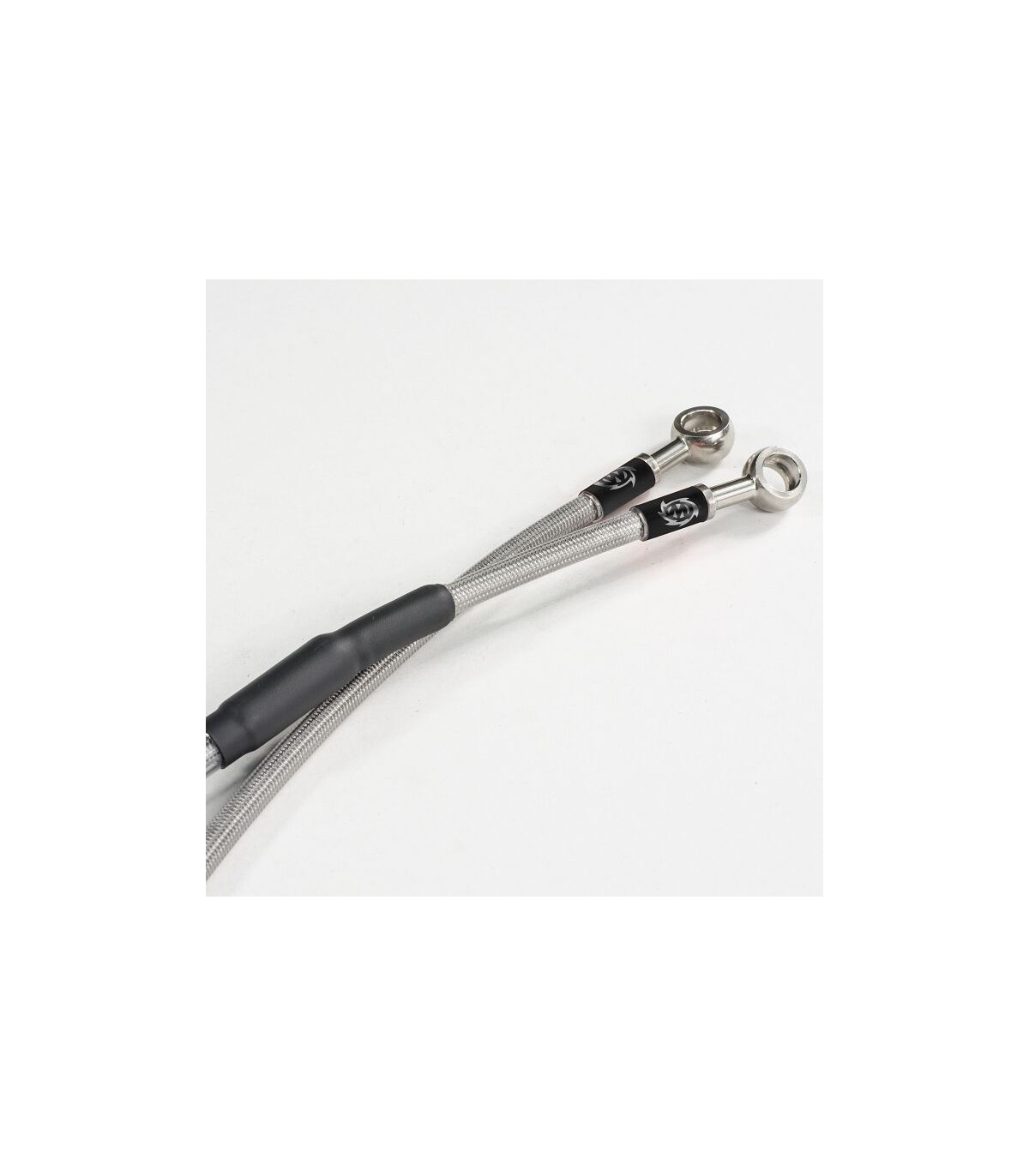 Durite de frein en acier inoxydableConçue spécialement pour une utilisation avec notre maître-cylindre radial, cette durite de frein en acier inoxydable tressé est une amélioration considérable pour tous les systèmes de freinsProtégée par un cache en PVC léger, mais durable qui lui permet de résister aux charges importantes et fournissant également de meilleures sensations et une incroyable réponse en raison de sa flexibilité réduite par rapport à la durite en plastique d'origine standardToutes les durites sont livrées avec le kit de montage nécessaire, y compris les vis Banjo et des rondelles en cuivre ainsi que les instructions d'installationPour motos sans pharesCes durites de frein DOIVENT être utilisées avec le maître-cylindre radial Moto Master réf. N° 0611-0026 et 0611-0027. Les durites de frein d'origine ne conviendront pas.Brake Line OEM Replacement Front, TM Racing