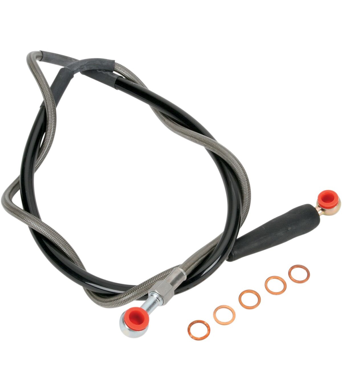 Durite de frein tressée en acier inoxydableLes extrémités avec raccord tournant sont le secret d'une fixation plus facile et garantissent une installation sans plis ni contrainteAu Royaume-Uni, Venhill Engineering recommande les durites d'embrayage en acier inoxydable et les durites d'embrayage Moose RacingChaque durite se distingue par un revêtement en Teflon® DuPont de qualité exceptionnelle, est recouverte d'acier inoxydable britannique et revêtue d'une couche de PVC pour améliorer à la fois sa protection et son designLes soufflets de protection en caoutchouc et le tuyau extrêmement rigide sont utilisés pour protéger les zones vulnérables de la chaleur et des impacts et empêcher les tuyaux de se plier sous l'effet de la compressionChaque durite est conçue pour résister à une pression d'au moins 14 000 psiInstaller nos durites en acier inoxydable Moose Racing c'est choisir une performance sensiblement améliorée tout en diminuant significativement l'expansion sous pression et l'absorption d'eau par rapport aux tuyaux en caoutchouc d'origine