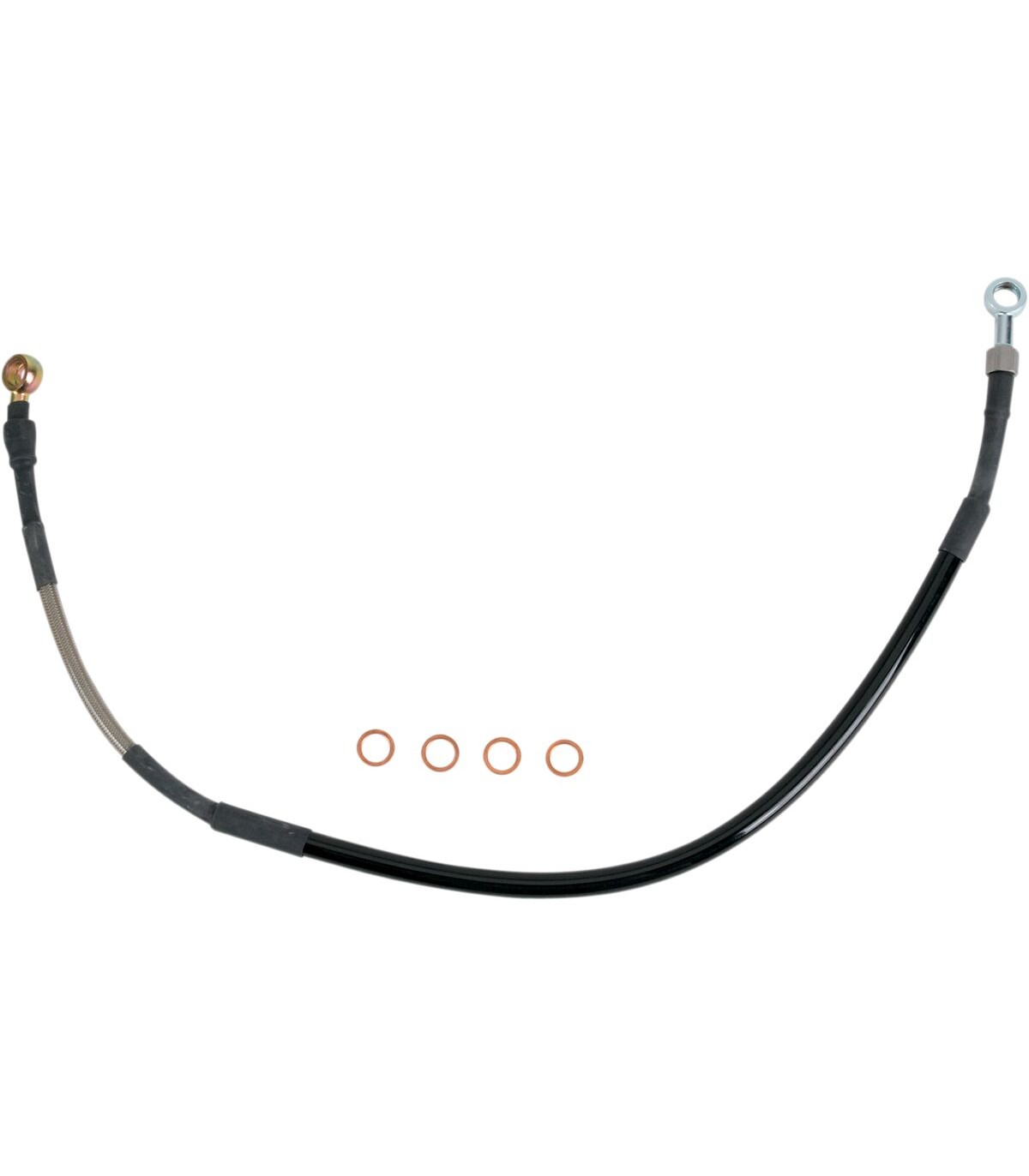 Durite de frein tressée en acier inoxydableLes extrémités avec raccord tournant sont le secret d'une fixation plus facile et garantissent une installation sans plis ni contrainteAu Royaume-Uni, Venhill Engineering recommande les durites d'embrayage en acier inoxydable et les durites d'embrayage Moose RacingChaque durite se distingue par un revêtement en Teflon® DuPont de qualité exceptionnelle, est recouverte d'acier inoxydable britannique et revêtue d'une couche de PVC pour améliorer à la fois sa protection et son designLes soufflets de protection en caoutchouc et le tuyau extrêmement rigide sont utilisés pour protéger les zones vulnérables de la chaleur et des impacts et empêcher les tuyaux de se plier sous l'effet de la compressionChaque durite est conçue pour résister à une pression d'au moins 14 000 psiInstaller nos durites en acier inoxydable Moose Racing c'est choisir une performance sensiblement améliorée tout en diminuant significativement l'expansion sous pression et l'absorption d'eau par rapport aux tuyaux en caoutchouc d'origine