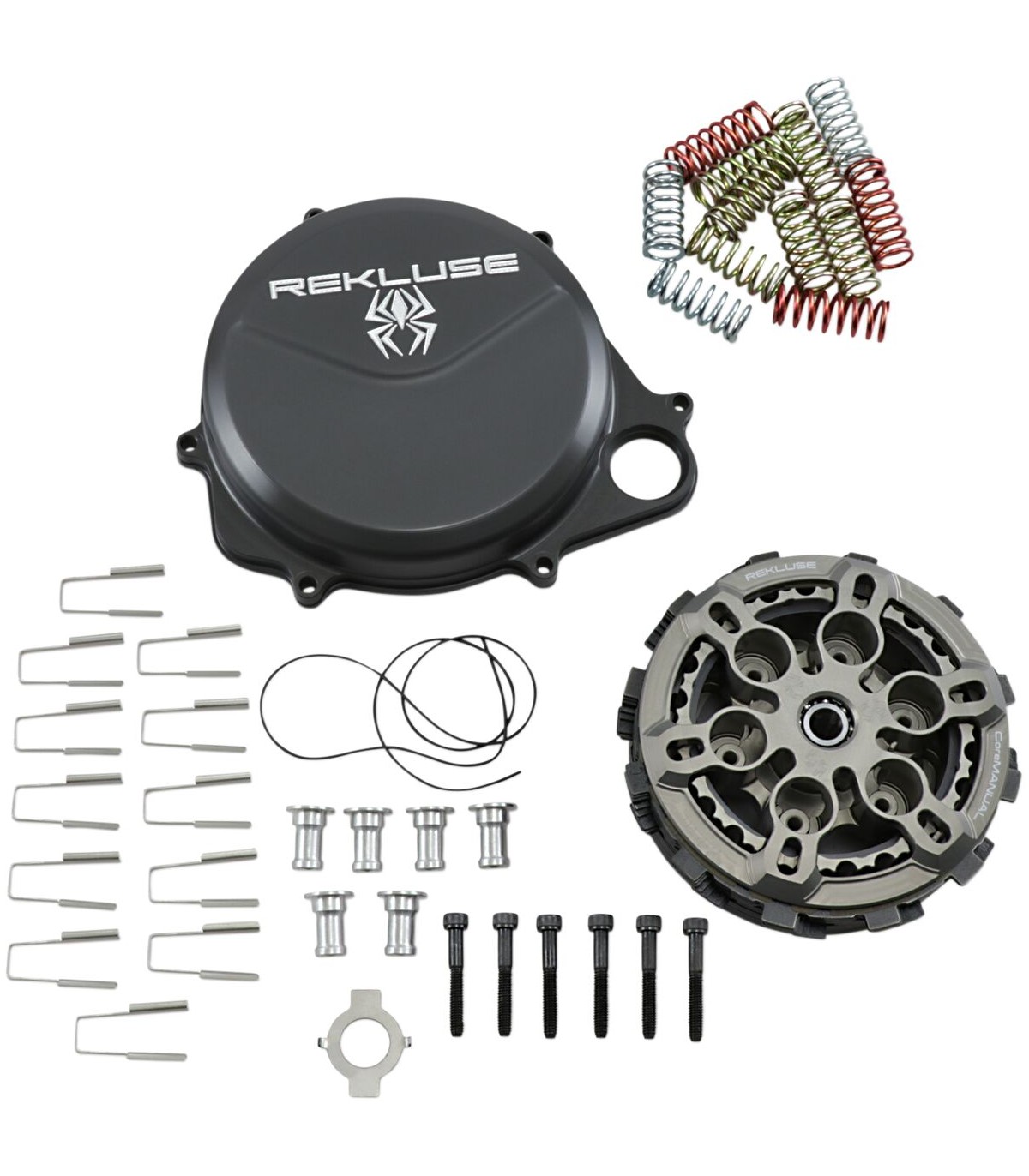 Kit d’embrayage Core Manual TorqDrive®L’embrayage manuel Core TorqDrive offre des performances, un réglage et une durabilité sans précédentTorqDrive fournit plus de disques dans un espace réduit, permettant jusqu’à quatre disques de friction supplémentaires par rapport à la version de sériePlus de friction = plus de capacité de couple, libérant ainsi toute la puissance de votre moteur sans avoir besoin d’ajouter des ressorts de plateau de pression plus rigidesOffre des sensations plus constantes du levier d'embrayage et un meilleur comportementPeut être installé pour conserver une réponse du levier identique à celle d’origine ou plus légère que celle d’origine en fonction du réglage du moteurAvec les manchons Rekluse, la cloche d'embrayage de s’use pas et aucune encoche ne se formeÉprouvé pendant la course aux niveaux les plus élevésFabrication aux États-Unis.L'utilisation de manchons n’est pas nécessaire pour les modèles avec cloche d’embrayage en acier