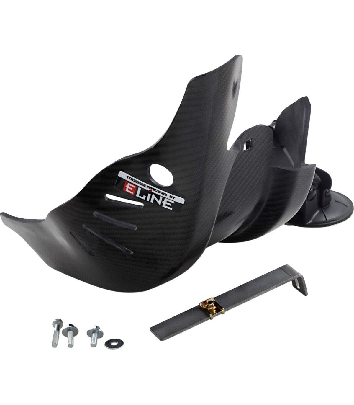 Sabot de protection en fibre de carbonePlaques épaisses en matériau composite offrant de nombreux avantages par rapport à l'aluminiumL'utilisation de matériau composite antibalistique confère une plus longue durée de vie et une meilleure résistance aux déformations que l'aluminiumLes plaques en composite sont moulées pour obtenir précisément la forme désirée, ce qui leur permet d'être mieux ajustées et de mieux vous protégerLes plaques en composite absorbent les vibrations et n'amplifient pas les sons, contrairement à l'aluminiumLorsqu'il est soumis à un choc violent, l'aluminium se déforme de façon permanente, pliant les tubes de cadre et perçant la pompe à eauLes sabots en composite, eux, se remettent facilement des chocs et sont encore comme neufs quand les sabots en aluminium ont jeté l'éponge depuis longtempsEn plus du cadre et de la partie moteur centrale, les sabots de protection protègent les couvercles latéraux du moteur et la pompe à eauAvec partie avant surélevée pour éviter que la boue ne s'accumule sur le moteurAvec kit de montageFabrication aux États-Unis