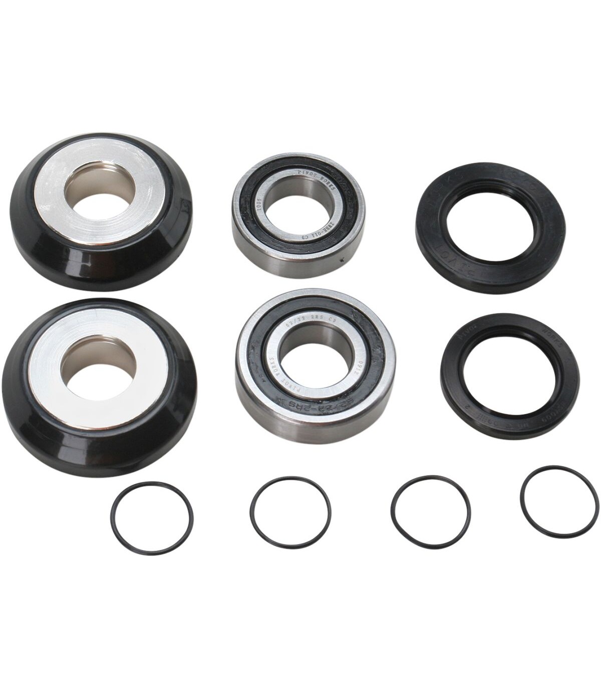 Kits roulement et entretoise de roue étancheLes kits incluent des roulements, des joints, des entretoises de roue étanches et un jeu de joints toriques supplémentaireLes joints toriques chassent les saletés et les débris du moyeu entre la bague et l’axeAnodisation dure militaire spéciale ; résistance à la corrosion et à la rouille