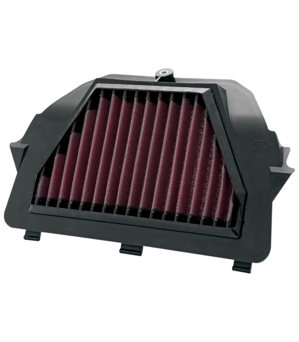 High-Flow Air Filter™ pour moto sportive et moto de courseMoins de plis que les filtres à air standards K&N, ce qui ouvre l'ailette d'entrée d'airAugmentent la puissance des motos sportives modifiéesDes modifications de la gestion du carburant pourraient être nécessairesDeux couches de média filtrant en cotonFabrication aux États-Unis depuis plus de 50 ansPour course sur circuit fermé et compétition