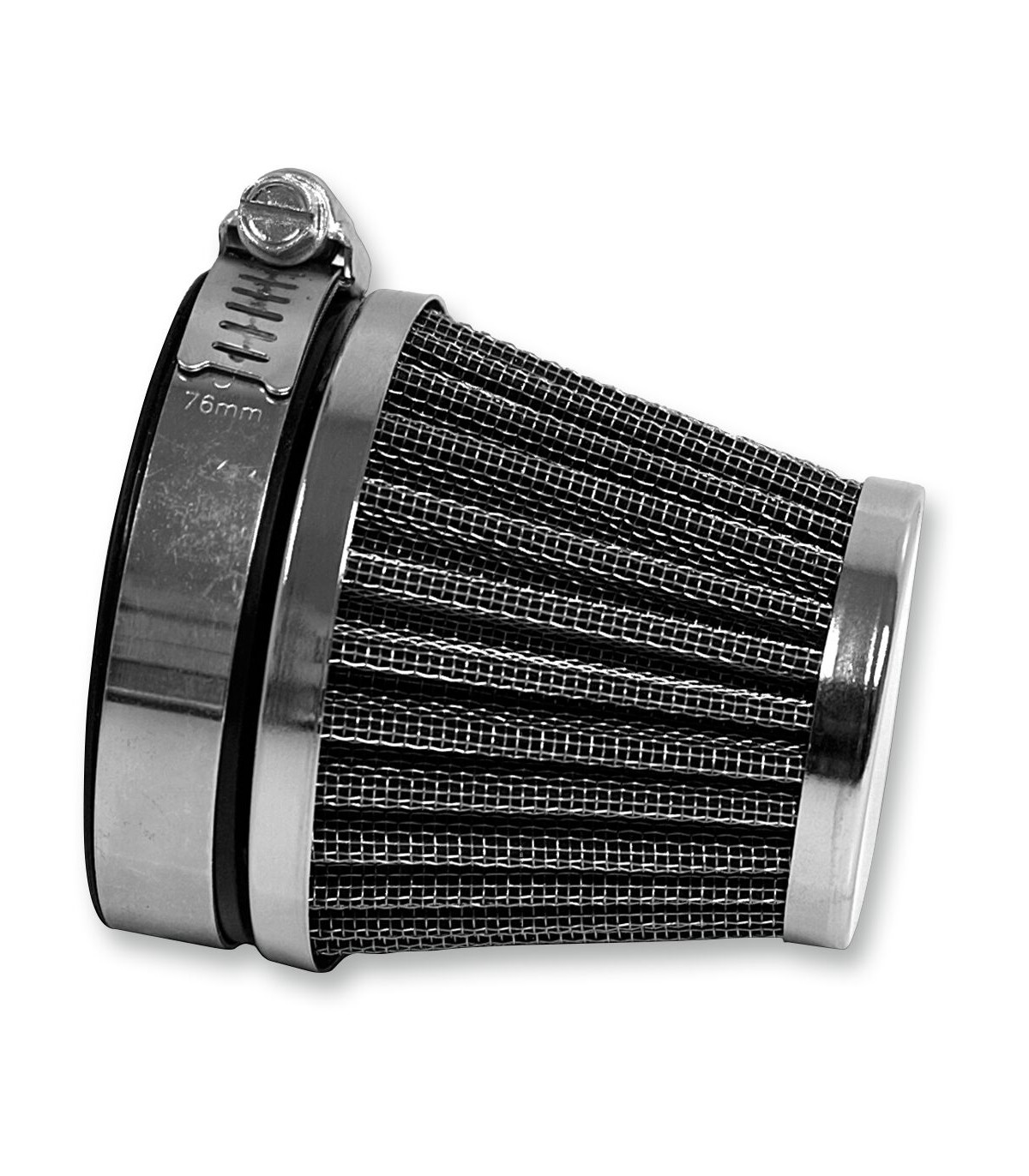 Filtre à air individuel à collier EmgoFixation sûre grâce au collier de serrage en acier inoxydable inclusFabriqués en papier de haute qualité permettant un flux élevé, avec embout en chromeLa largeur est le plus grand diamètre du matériau filtrantAvant de commander ce filtre, vérifiez le diamètre extérieur de l’arrivée d’air.