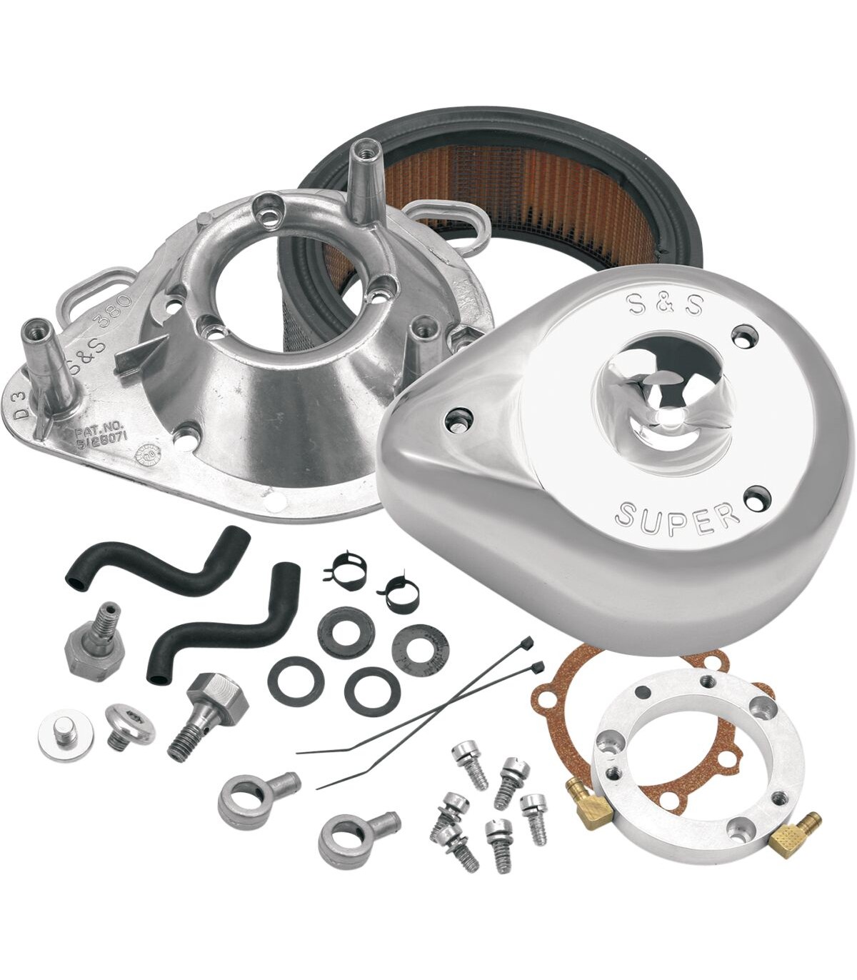 Kit de filtre à air en forme de goutte d’eauCe kit renferme un cache S&S, une plaque de support, un élément filtrant de qualité ainsi que du matériel de montage.Disponibles pour la plupart des carbrateurs d'origine et des systèmes d'admission performance S&SPuissance accrue sans aucune autre modificationFabrication aux États-UnisEn cas d’installation d’un filtre à air S&S, il se peut que vous deviez régler à nouveau le moteur. Un recalibrage en fonction des normes d’émission du fabricant est néanmoins vital pour garantir la conformité à l’ordre exécutif du CARB.