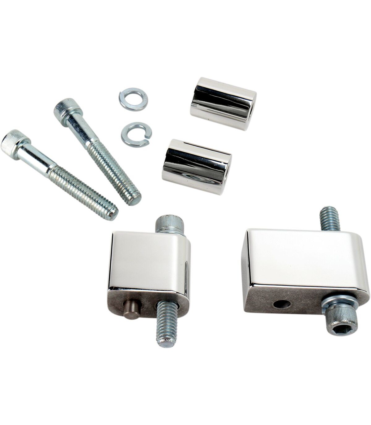 Kit d’extension pour platines repose-pieds piloteAméliore le confort en éloignant les jambes du réservoir de carburant et de la chaleur du moteurCompatible avec les caches primaires surdimensionnésKit facile à installer en utilisant le matériel de montage comprisCompatible avec les carénages inférieurs, mais pas avec une béquille centraleFabrication aux États-Unis