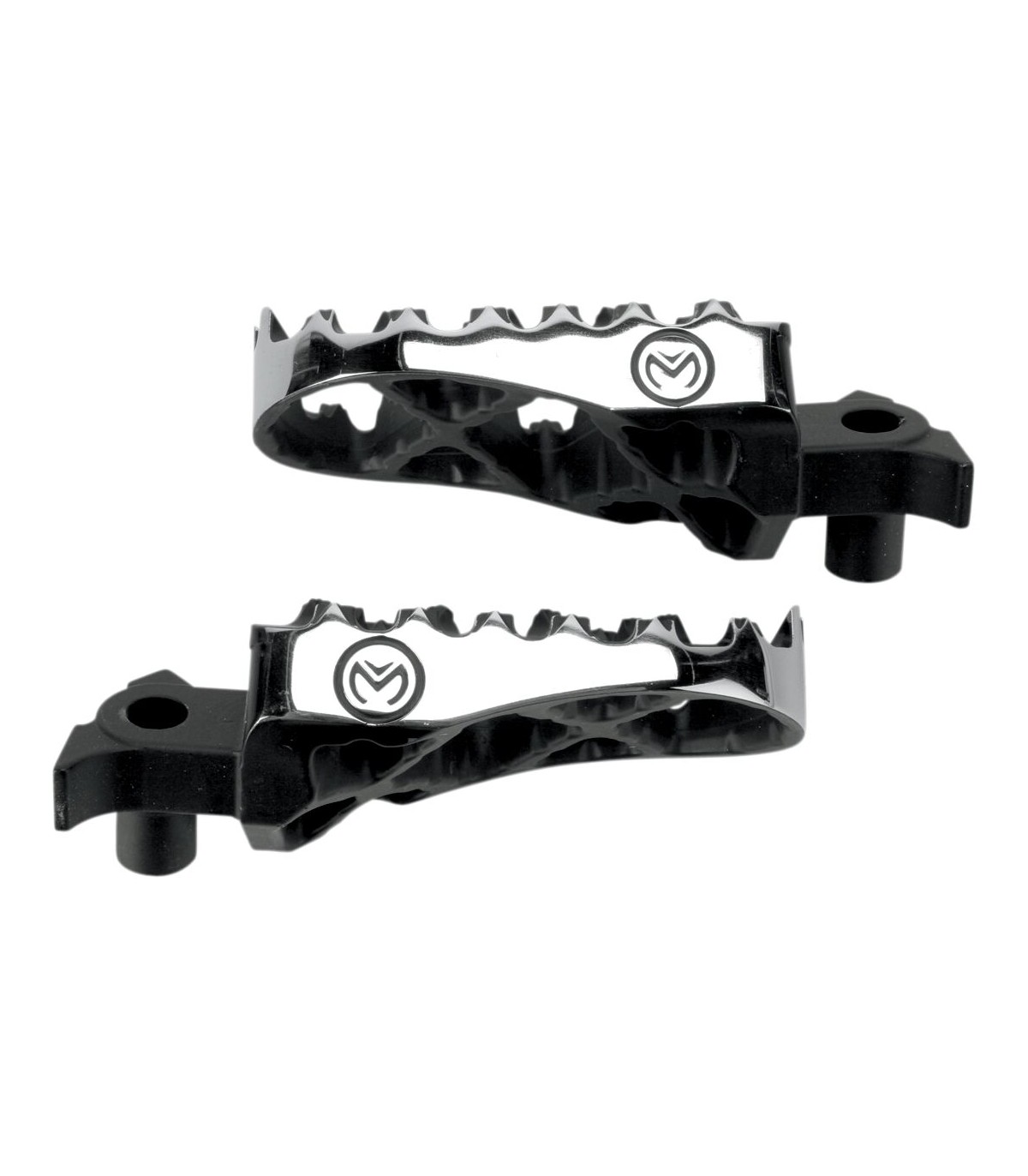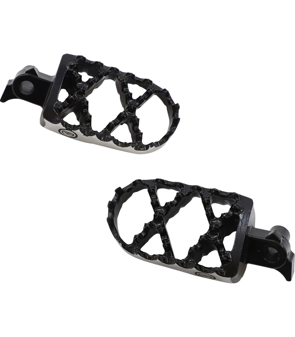 Repose-pieds HybridChaque repose-pied est en acier inoxydable 17-4 coulé, traité thermiquement, trempé, mis en solution et durci par vieillissement pour une résistance supérieureLarge de 57 mm et longue de 90 mm, cette plate-forme légèrement convexe permet de mieux positionner la botte et améliore l'adhérence quand vous vous penchez vers l'avant ou l'arrièreLes rangées de dents se croisant garantissent une adhérence optimale sans donner la sensation d’être « coincé ».Fabrication aux États-Unis