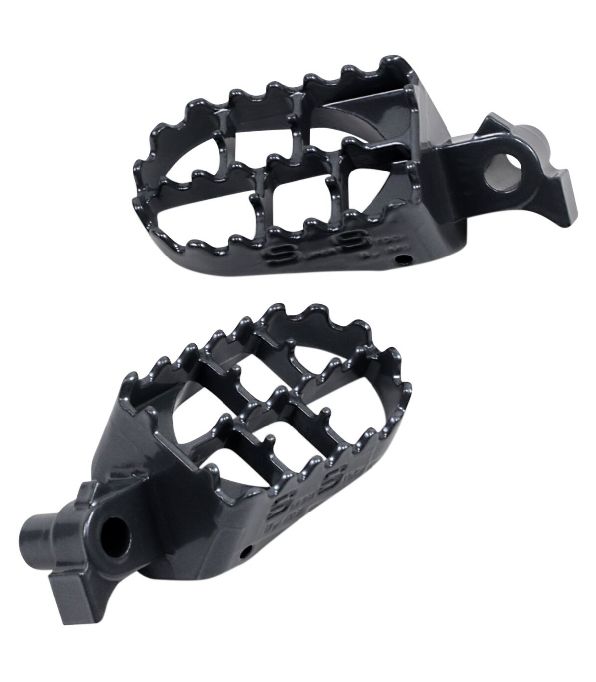 Repose-pieds Super StockPlus larges que ceux d’origine, pour le confort du piedEn acier inoxydable - pas de soudureMoletés pour un bon placement du pied, avec pointes arrondies pour plus de sécurité