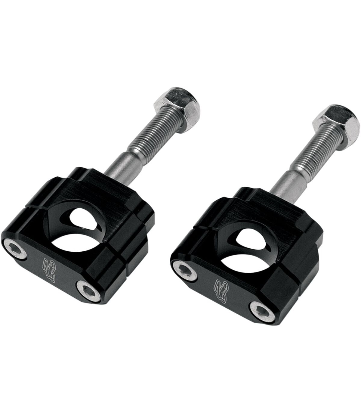 Kit de fixation de guidon à monter sur silent-block en caoutchoucConçus pour permettre de monter des guidons surdimensionnés de 1-1/8" sur certains modèles de motos dotés de guidons standard de 7/8"Usinés CNC à base d’aluminium 6086-T6 et goujons en acier chromé et nickel durciUtilisent les cônes en caoutchouc d’origine ; non inclus