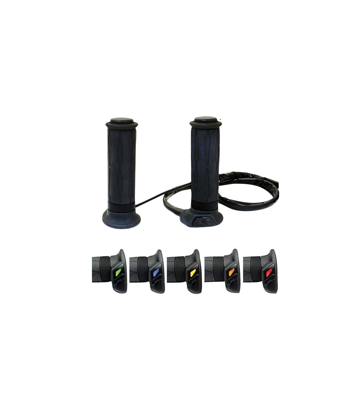 Heated GripDesigned with an integrated adjustable thumb switch.Safety adjust temperature level without removing hands from the handlebar.Five colour LED display allows for quick indication of heat level.Detects low battery voltage.Available in two sizes: 22,23mm or 28,58mm