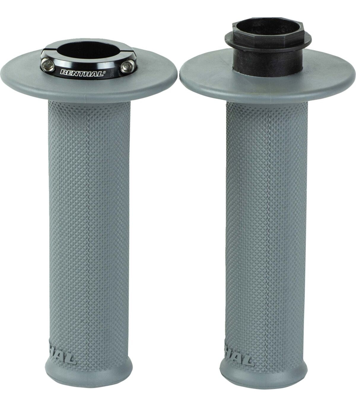 MX Original Lock-On GripsLock-on grip is fit for installation on any aftermarket handlebar without the need for modification while retaining full clamping forceTwin split collar design means you are able to slide the clutch side grip over any knurled MX handlebars without any sanding or modification, ensuring the clamp is permanently bonded to the gripEach pair of grips comes with a set of 6 throttle cams; cams cleanly snap on with a simple press fitment design and provide smooth throttle actionTuff-End Tech provides 4 mm thick solid plastic end caps with a premium and vibrant Renthal ‘R’ logo to minimize damage that can incur during a crash or tip over, allowing you to finish your ride or race without failure