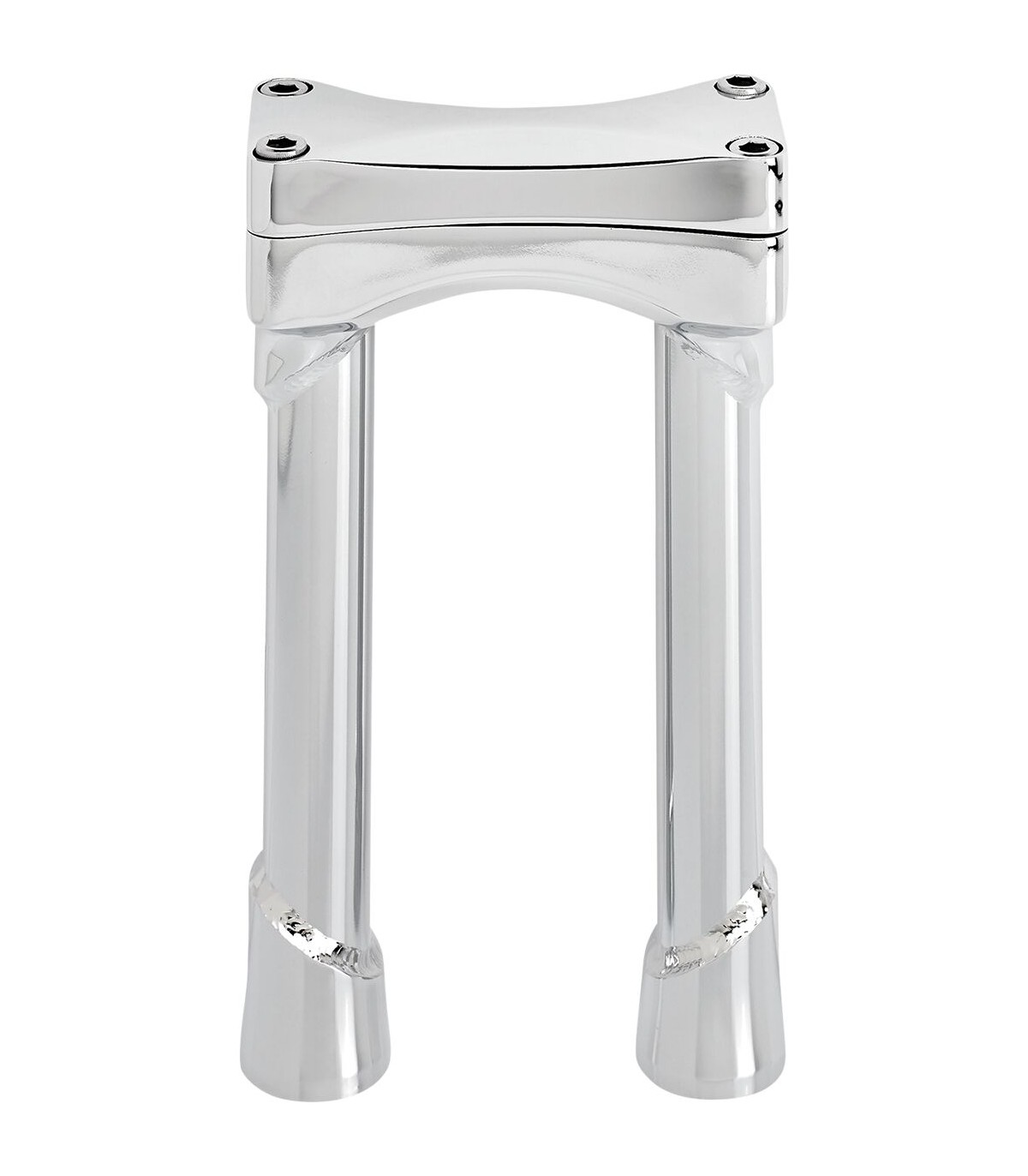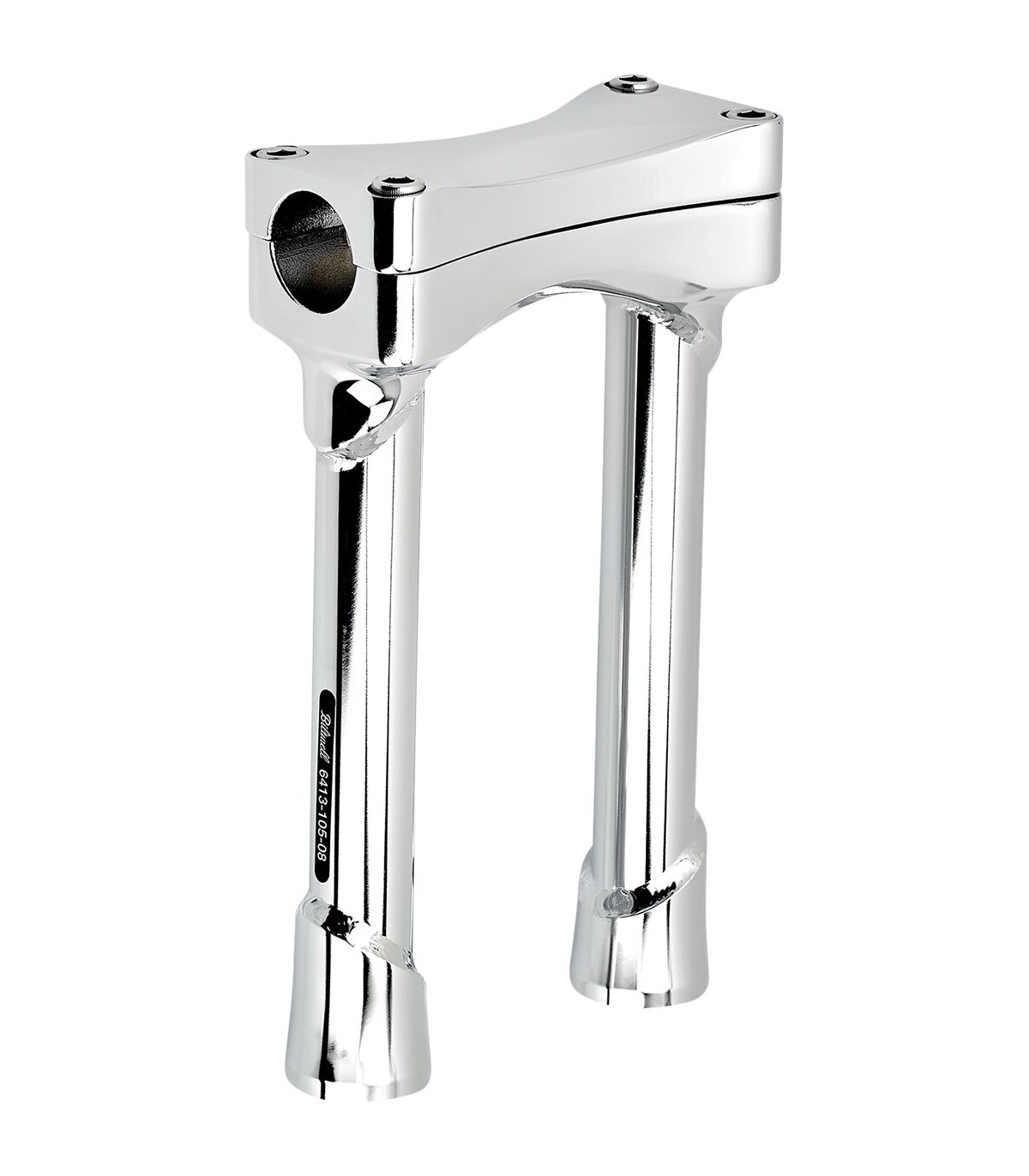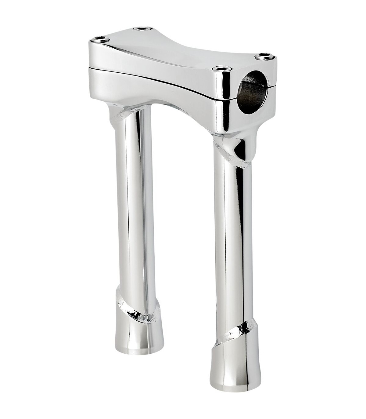 Riser E/S MurdockLe pontet en acier à moulage par cire perdue en une seule pièce est compatible avec les guidons de 28,58 mm (1-1/8 pouce) de diamètre extérieur.3 mm (0,12 pouce) d’épaisseur x 25,4 mm (1 pouce) de diamètre externe Sissy bars chromées 4130Plaques de fixation usinées CNC compatibles avec le kit de montage d'origine ou aftermarket de 1/2-13 T.P.I.Trous de fixation sur le centre de 89 mm (3,5 pouces), pour une adaptation à la plupart des tés de fourche d’origine et à certains tés de fourche H-D aftermarketLes risers de retour Murdock comportent des montants pliés au mandrin pour un déport de deux pouces de la barre vers l'arrière, idéal pour réduire la portée des pilotes plus petitsSoudé TIG et poli à la main avant le polissageMatériel de montage de pontet en acier inoxydable 5/16-18 t.p.i.