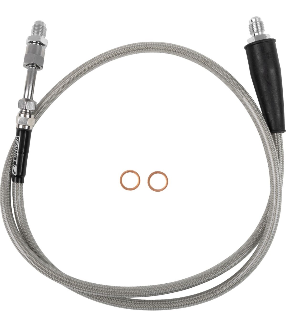 Durite d’embrayage tressée en acier inoxydableLes extrémités avec raccord tournant sont le secret d'une fixation plus facile et garantissent une installation sans plis ni contrainteAu Royaume-Uni, Venhill Engineering recommande les durites d'embrayage en acier inoxydable et les durites d'embrayage Moose RacingChaque durite se distingue par un revêtement en Teflon® DuPont de qualité exceptionnelle, est recouverte d'acier inoxydable britannique et revêtue d'une couche de PVC pour améliorer à la fois sa protection et son designLes soufflets de protection en caoutchouc et le tuyau extrêmement rigide sont utilisés pour protéger les zones vulnérables de la chaleur et des impacts et empêcher les tuyaux de se plier sous l'effet de la compressionChaque durite est conçue pour résister à une pression d'au moins 14 000 psiInstaller nos durites en acier inoxydable Moose Racing c'est choisir une performance sensiblement améliorée tout en diminuant significativement l'expansion sous pression et l'absorption d'eau par rapport aux tuyaux en caoutchouc d'origine