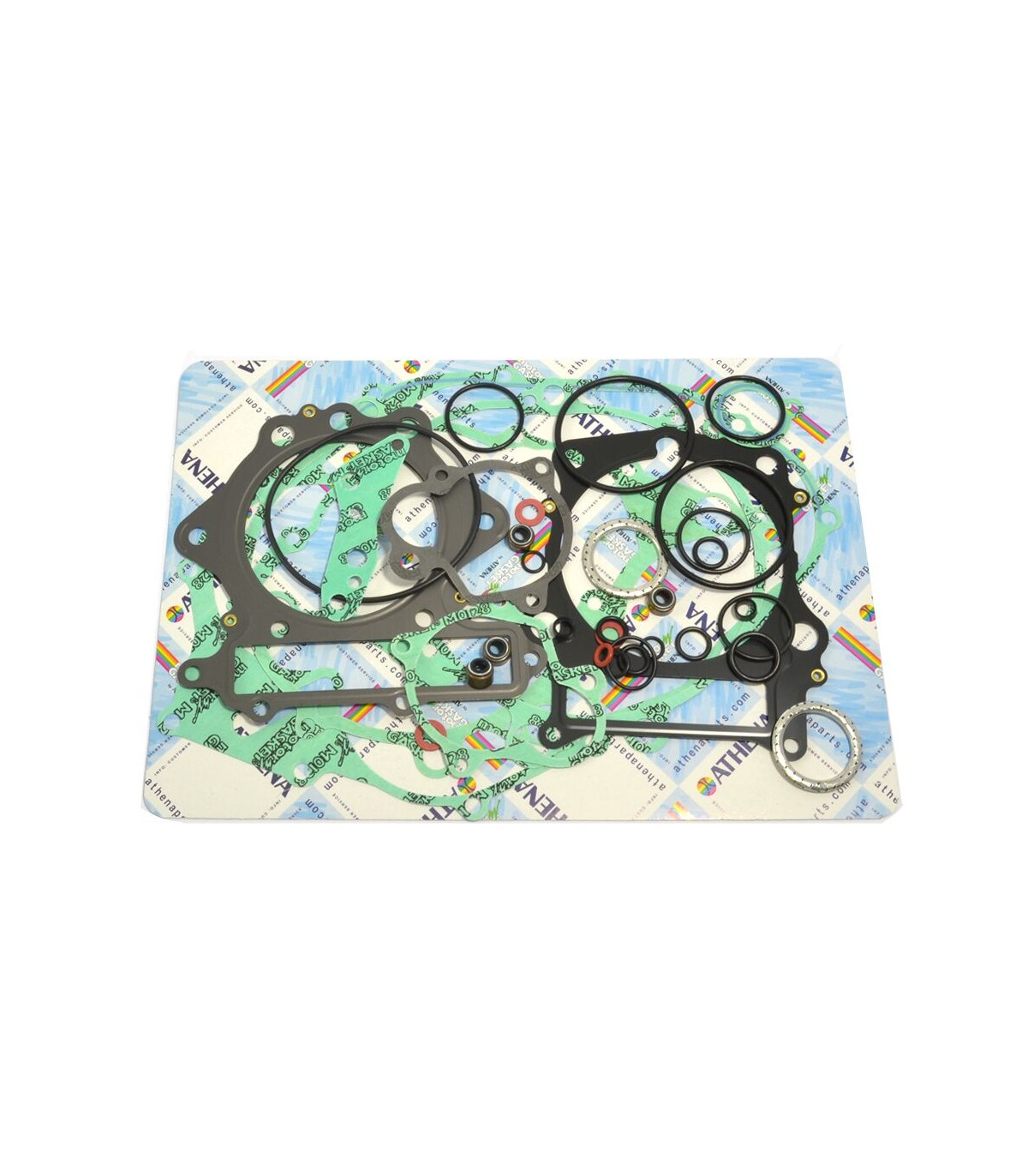 Kits de joints completKit de joints de qualité supérieure fabriqués par Athena S.p.A.Joints de culasse caractérisés par une structure ondulable en acier revêtu de caoutchoucLes joints d’embase en acier doux sont revêtus de caoutchoucLes matériaux de base en métal se caractérisent par une haute compression et une résistance à la tension supérieureLa couverture transparente révolutionnaire garantit une étanchéité parfaite même à des températures extrêmement élevéesCouche de silicone bleue de haute température sur la plupart de joints plats essentielsLes kits de joints complets comprennent tous les joints nécessaires pour reconstruire le joint haut et la partie inférieure du moteur, y compris tous les joints en caoutchouc et les joints toriques, partie supérieure et inférieure.