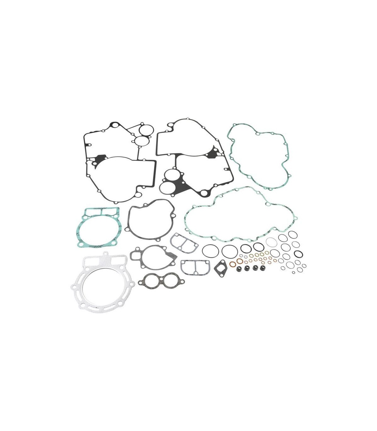 Kits de joints completKit de joints de qualité supérieure fabriqués par Athena S.p.A.Joints de culasse caractérisés par une structure ondulable en acier revêtu de caoutchoucLes joints d’embase en acier doux sont revêtus de caoutchoucLes matériaux de base en métal se caractérisent par une haute compression et une résistance à la tension supérieureLa couverture transparente révolutionnaire garantit une étanchéité parfaite même à des températures extrêmement élevéesCouche de silicone bleue de haute température sur la plupart de joints plats essentielsLes kits de joints complets comprennent tous les joints nécessaires pour reconstruire le joint haut et la partie inférieure du moteur, y compris tous les joints en caoutchouc et les joints toriques, partie supérieure et inférieure.