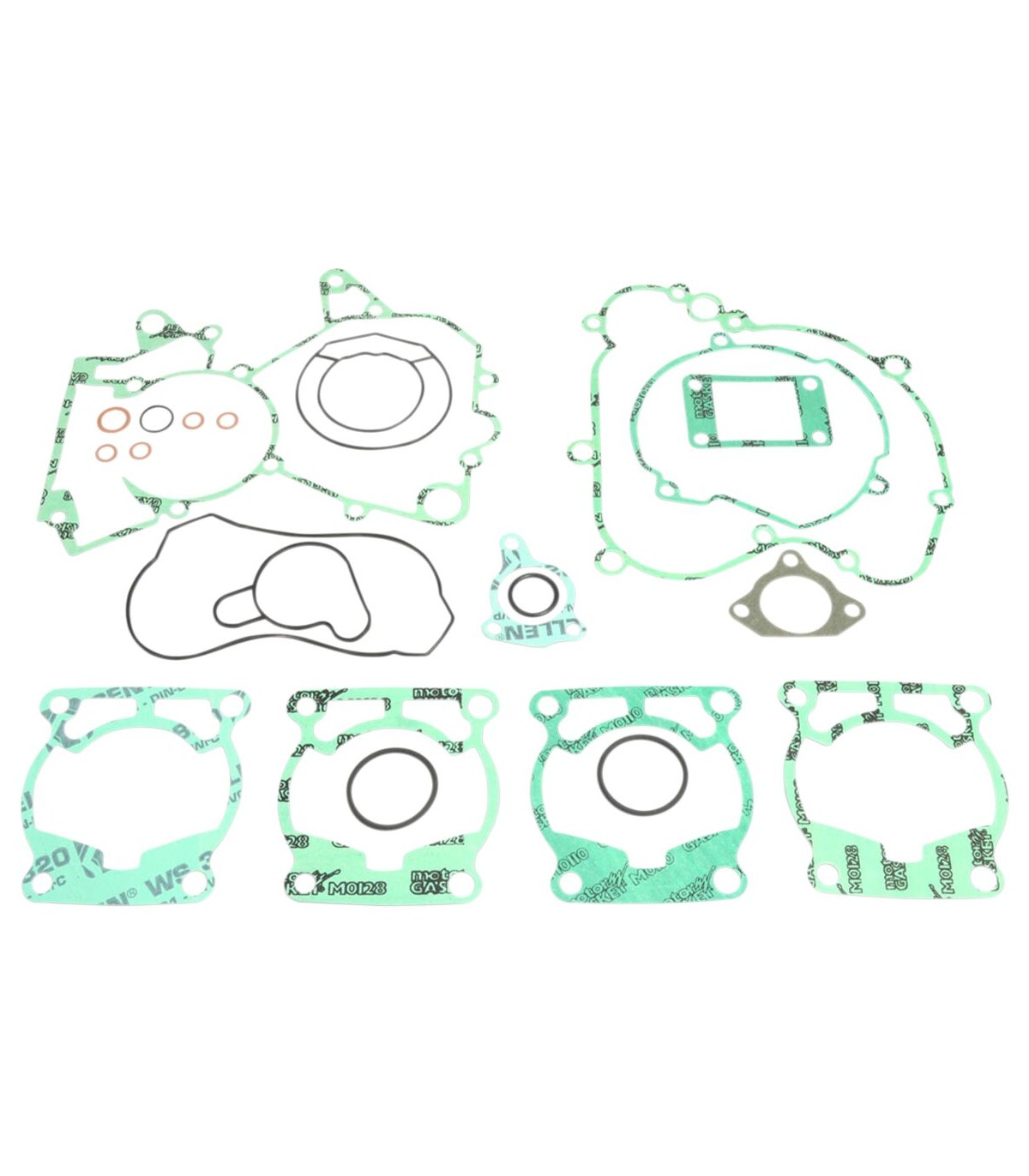 Kit de jointsJeux de joints de qualité supérieure fabriqués par AthenaJoints de culasse caractérisés par une structure ondulable en acier revêtu de caoutchoucLes joints d’embase en acier doux sont revêtus de caoutchoucLes matériaux de base en métal se caractérisent par une haute compression et une résistance à la tension supérieureLa révolutionnaire couverture transparente garantit une étanchéité parfaite même à des températures extrêmement élevéesCouche de silicone bleue de haute température sur la plupart de joints plats essentielsInclut les joints, pièces en caoutchouc et joints de queue de soupape de qualité supérieure nécessaires au reconditionnement, respectivement, du haut-moteur et du moteur completJoints spy non inclus