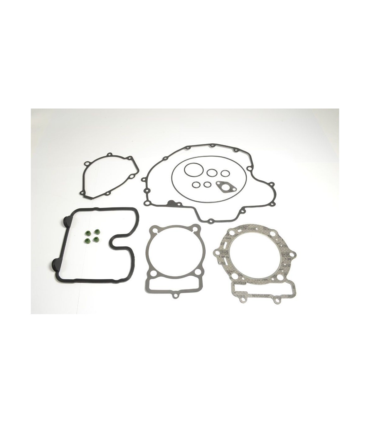 Kits de joints completKit de joints de qualité supérieure fabriqués par Athena S.p.A.Joints de culasse caractérisés par une structure ondulable en acier revêtu de caoutchoucLes joints d’embase en acier doux sont revêtus de caoutchoucLes matériaux de base en métal se caractérisent par une haute compression et une résistance à la tension supérieureLa couverture transparente révolutionnaire garantit une étanchéité parfaite même à des températures extrêmement élevéesCouche de silicone bleue de haute température sur la plupart de joints plats essentielsLes kits de joints complets comprennent tous les joints nécessaires pour reconstruire le joint haut et la partie inférieure du moteur, y compris tous les joints en caoutchouc et les joints toriques, partie supérieure et inférieure.